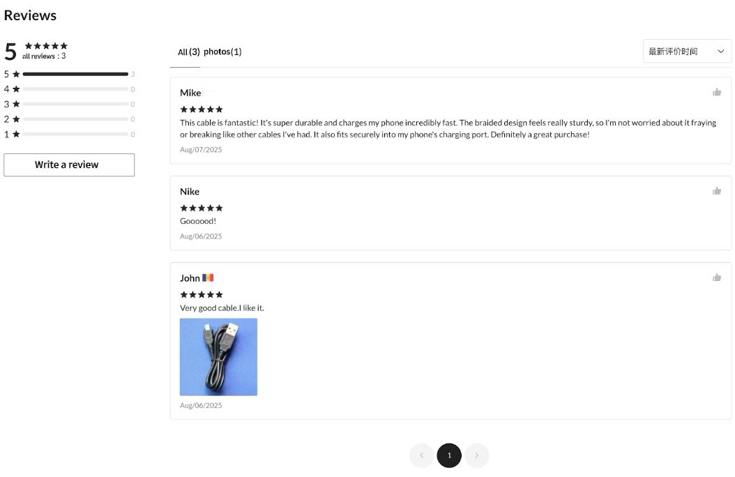 • The design styles and layouts of Product Detail Reviews, Review Flow, and Review Carousel Block differ, resulting in variations in visual effects. We recommend testing all three and keeping the one that best suits your needs to ensure the final setup aligns with your business requirements.
