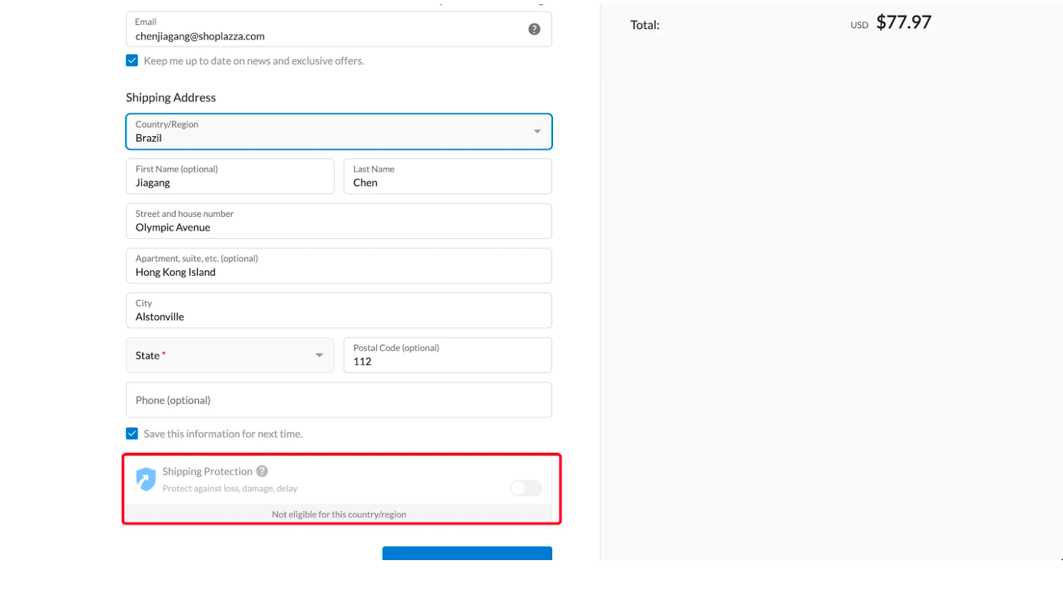 - By default, the Shipping Protection Service is pre-selected at checkout. In some European regions, this may not be allowed. Enabling this option indicates that you understand the applicable legal requirements and accept the associated risks.