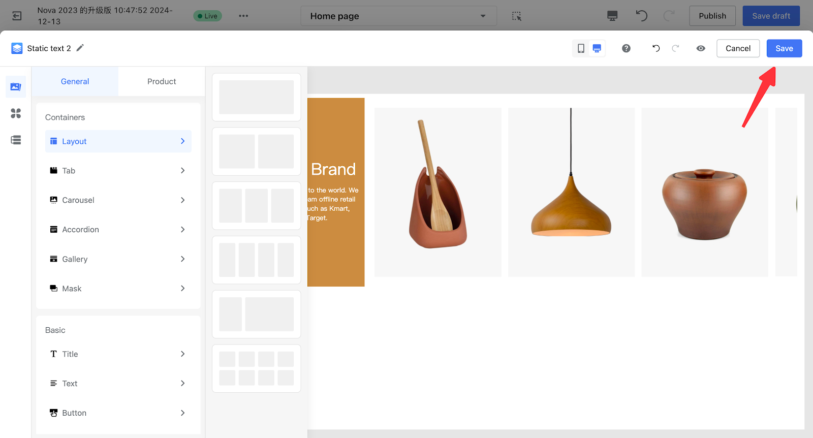 In the Advanced Card Marketplace, select an advanced card and click it to automatically add it to your theme. The Page Builder editor will open at the same time, allowing you to edit the card.