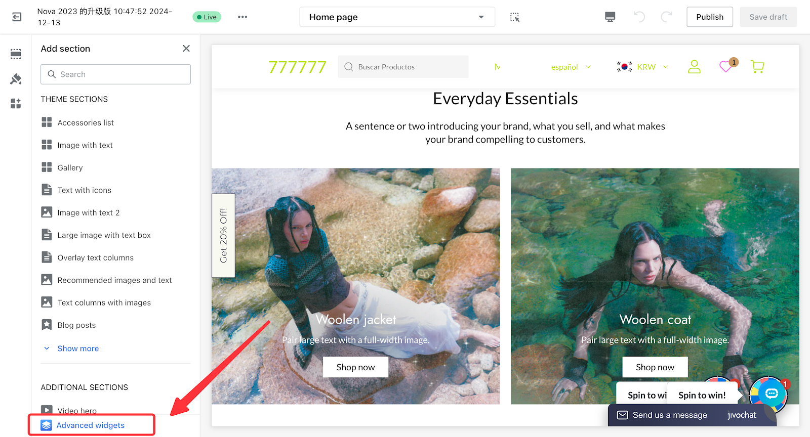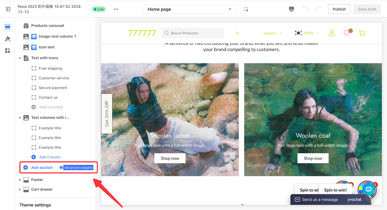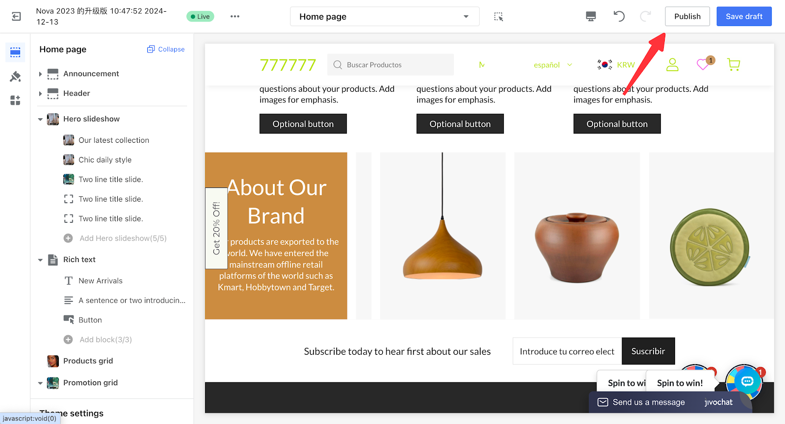 After completing the theme edits, publish the theme for the changes to take effect on the storefront.