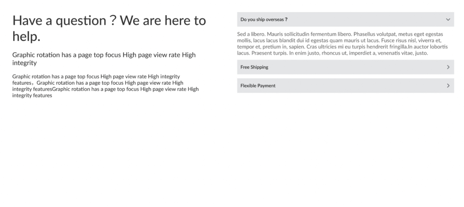 Accordion panels serve as container boxes, allowing you to freely add content for customization. |
