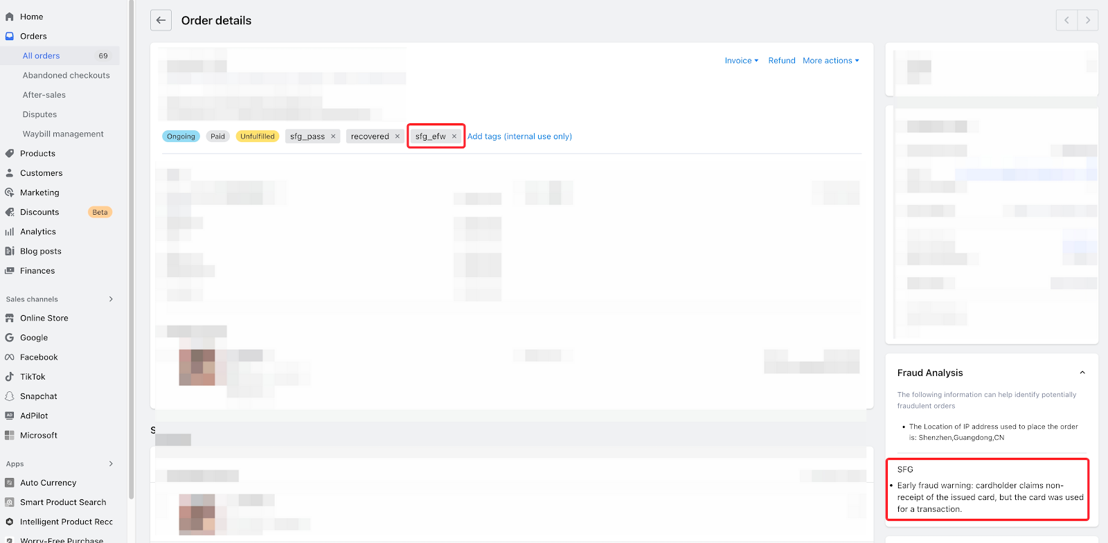 - Fraud Analysis, showing the specific Early Fraud Warning type within SFG.