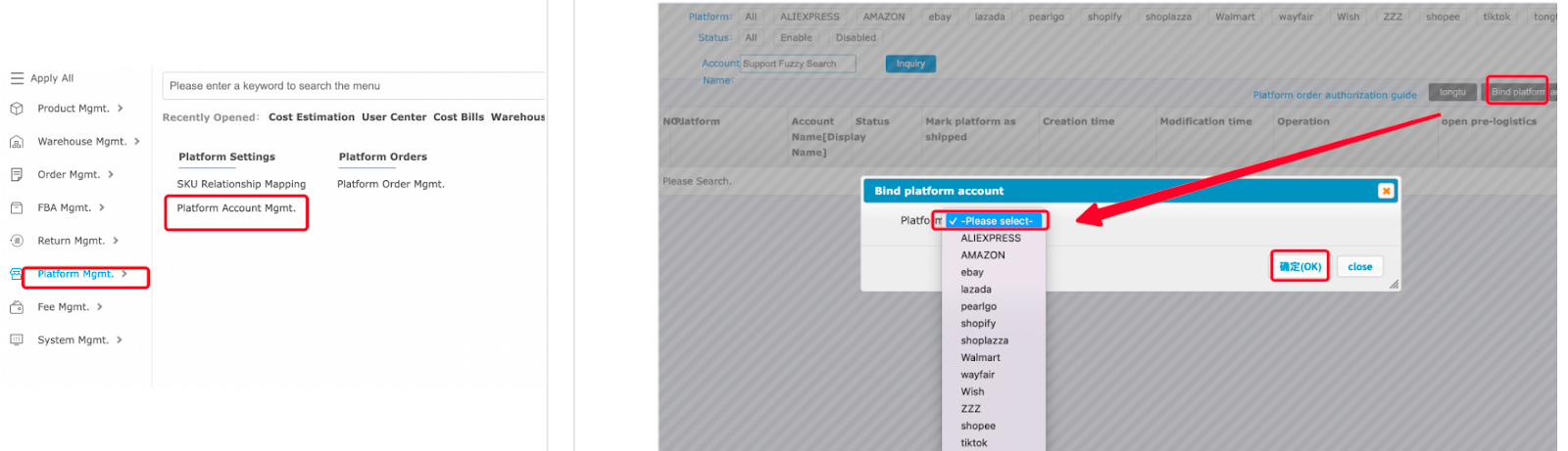 (You may click Platform Order Authorization Guide to view authorization instructions for different platforms.)
