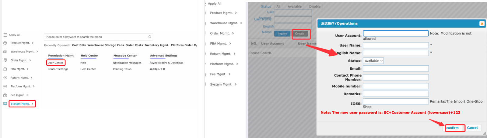 4. Fill in the sub-account user information and click Confirm.