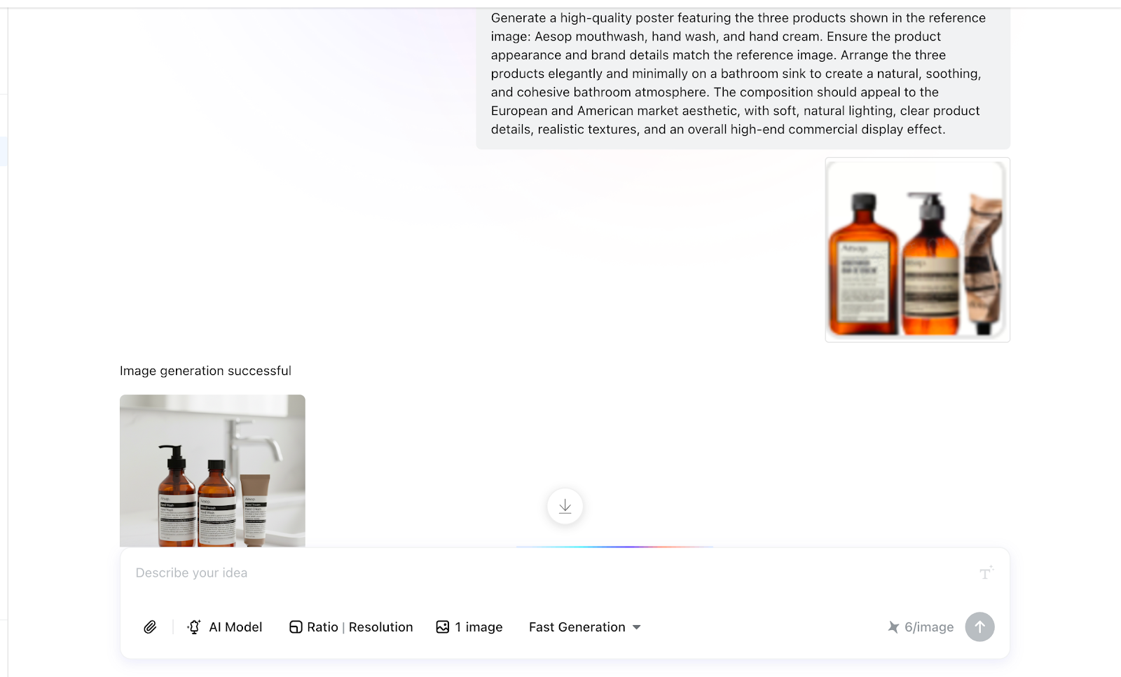 | Secondary Editing of Generated Images It is recommended to hover your mouse over the image you want to edit and use the "Reference Image" or "Copy Image" function to re-add the image to the input box as a reference for secondary editing.