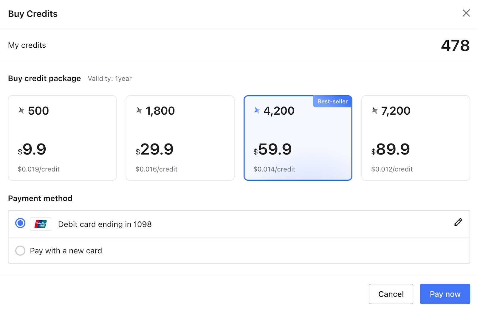 Purchase Ingenuity Points to generate images that require these points. Each Ingenuity Package is valid for 1 year. Points are consumed in the order of purchase — packages bought earlier will be used first. The more points you purchase in a package, the lower the cost per image generation.