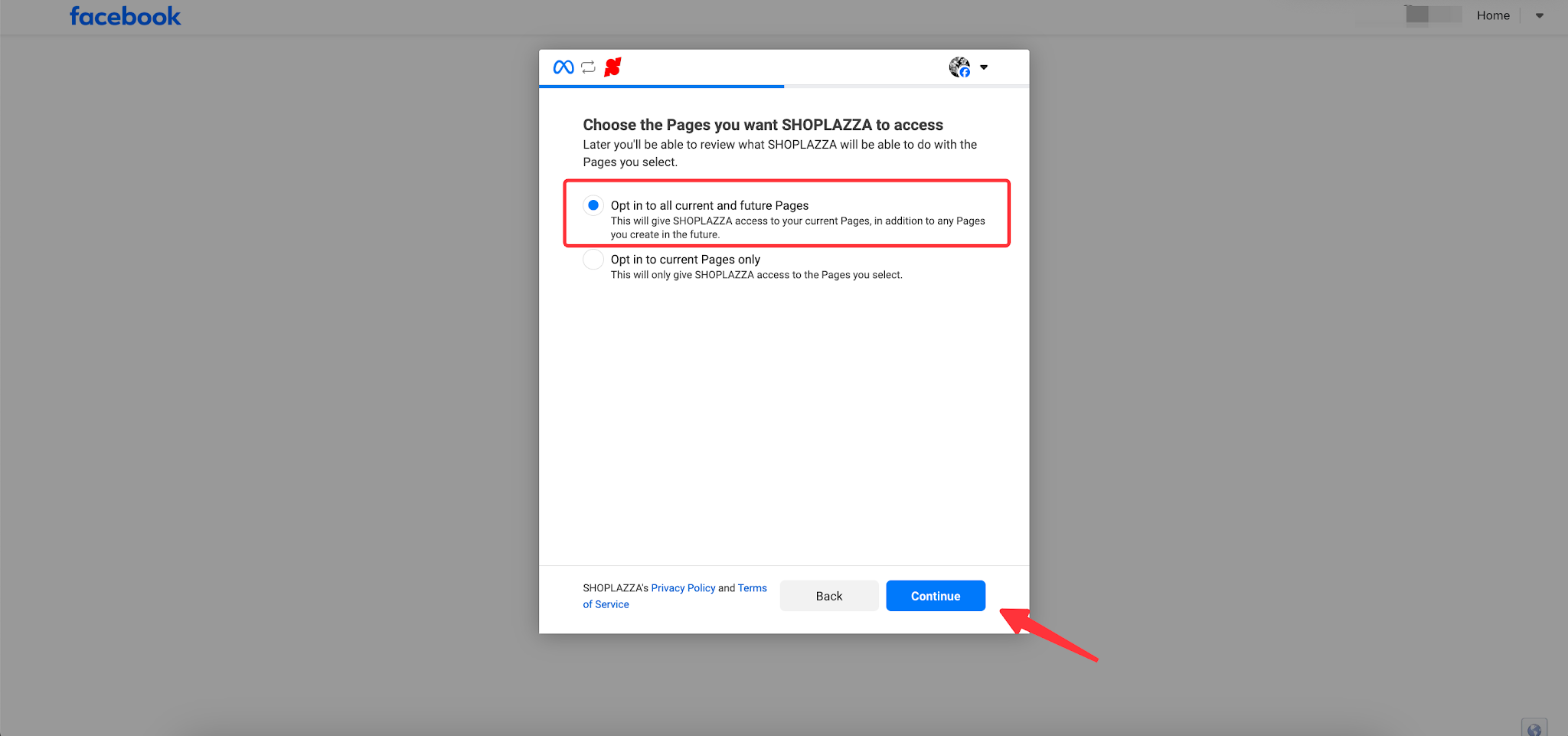 Ii. Select to enable all existing and future Business Manager accounts & Pages. After selecting, click the Continue button. Once the setup is complete, click Save to finish the authorization.
