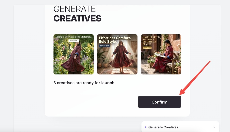 - After confirming the creatives, click [Confirm] to proceed to the next step.