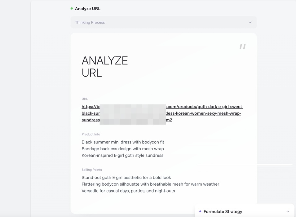a. The AI performs URL analysis to identify key product or page information and selling points.