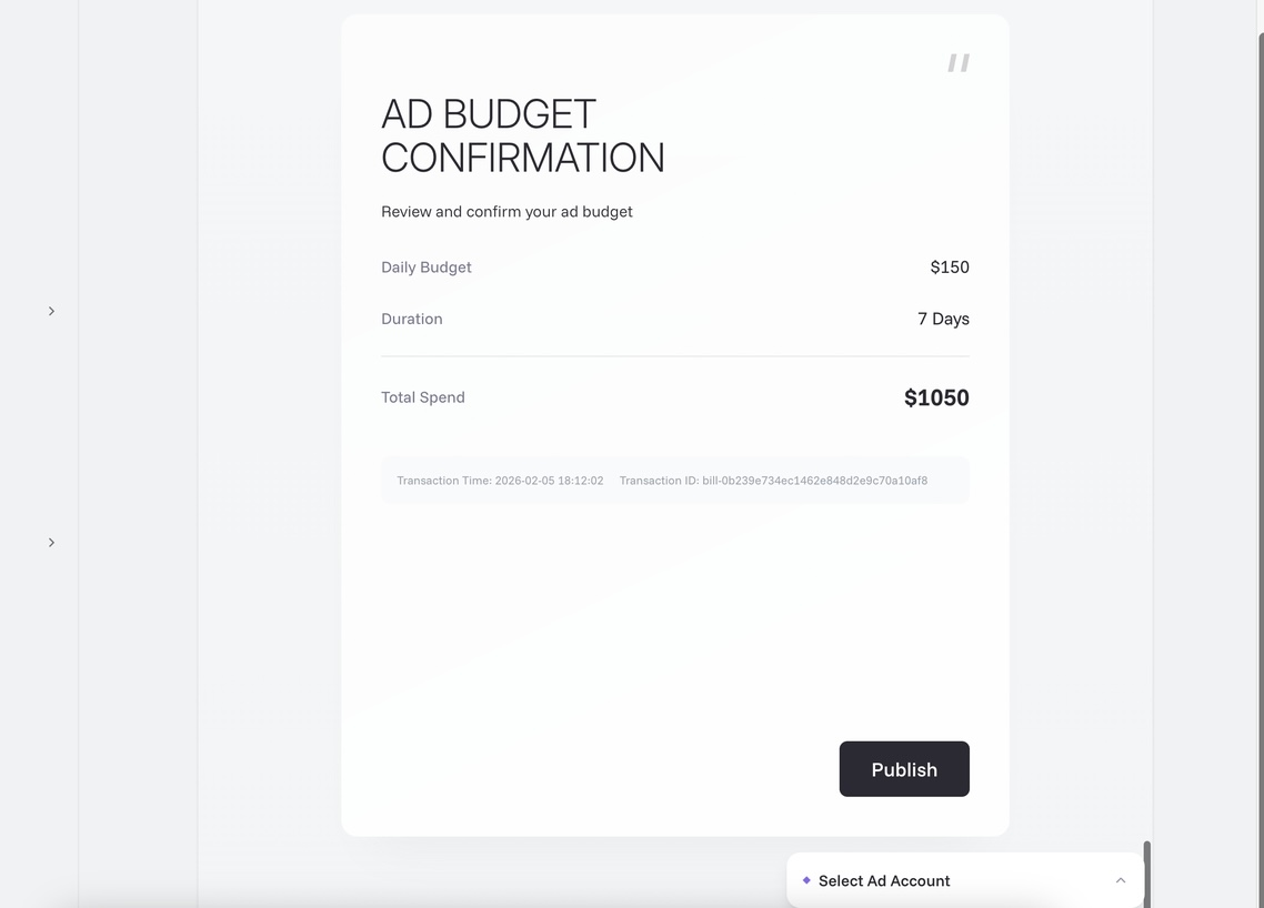 e. Confirm the ad budget and scheduling, then click [Publish] to launch the ad.