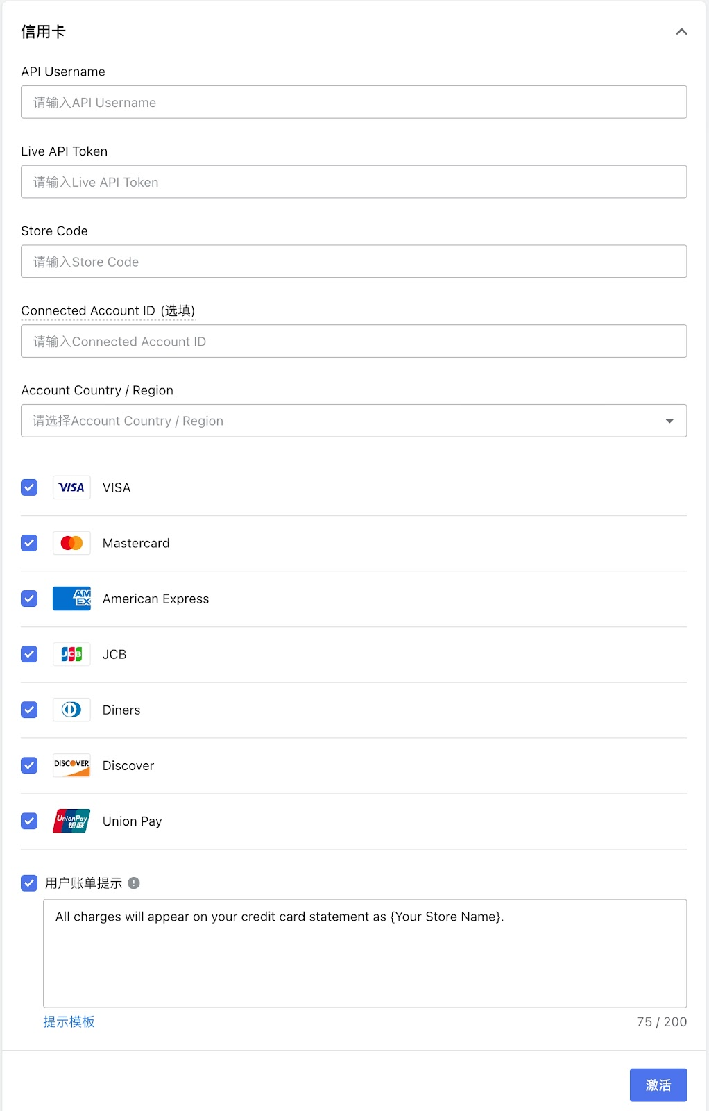 Payoneer 是 Shoplazza 直连支付服务商。若您激活 Payoneer 作为收款渠道,顾客可直接在您的在线商店完成购买,无需在第三方结账处支付,当前支持的支付方式如下: