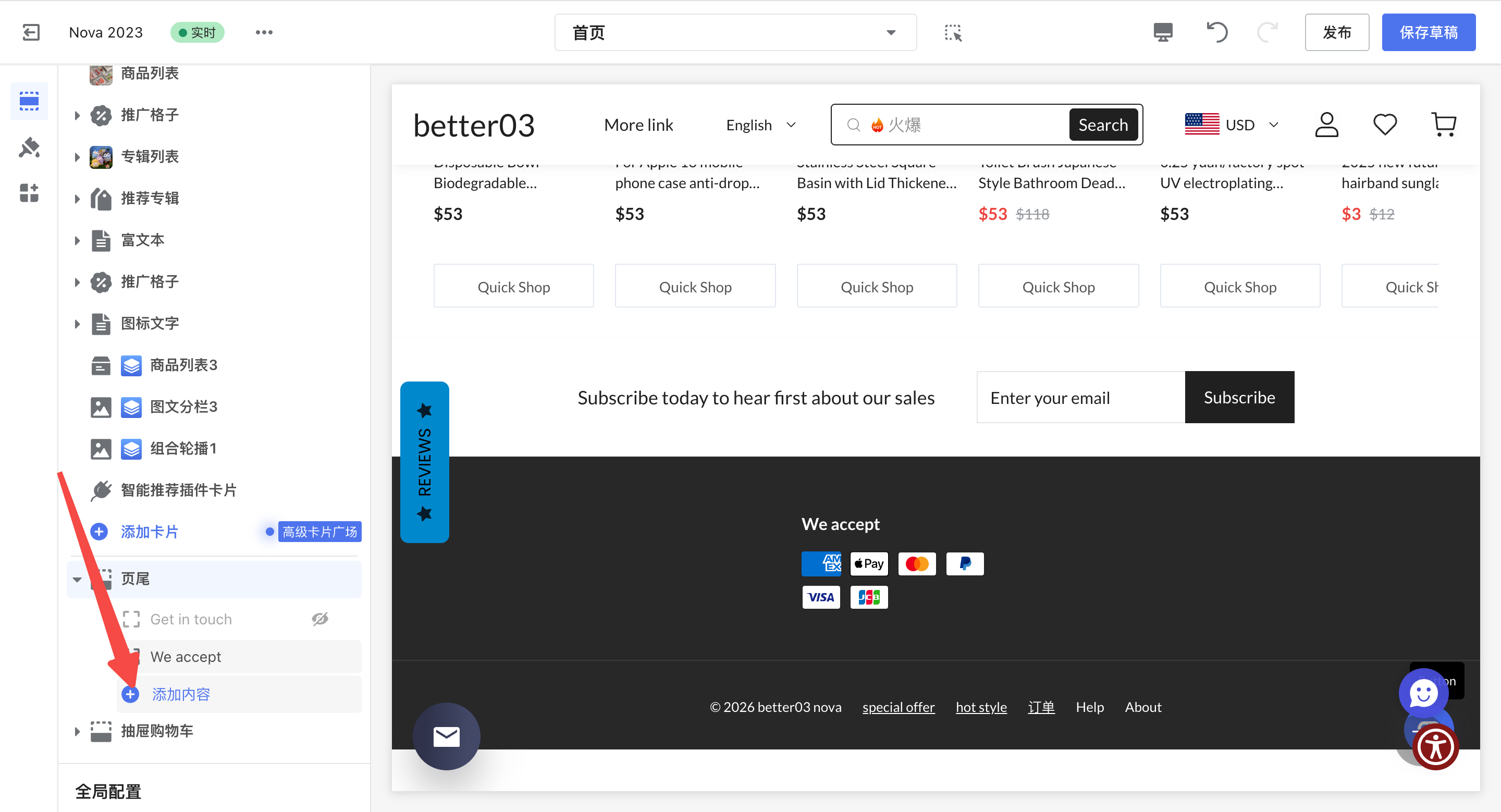 有效的页尾卡片设置有利于提高店铺的整体使用性。精细的页尾卡片设置还可以提醒您的客户浏览您店铺的其他页面,为店铺带来曝光并提升转化。