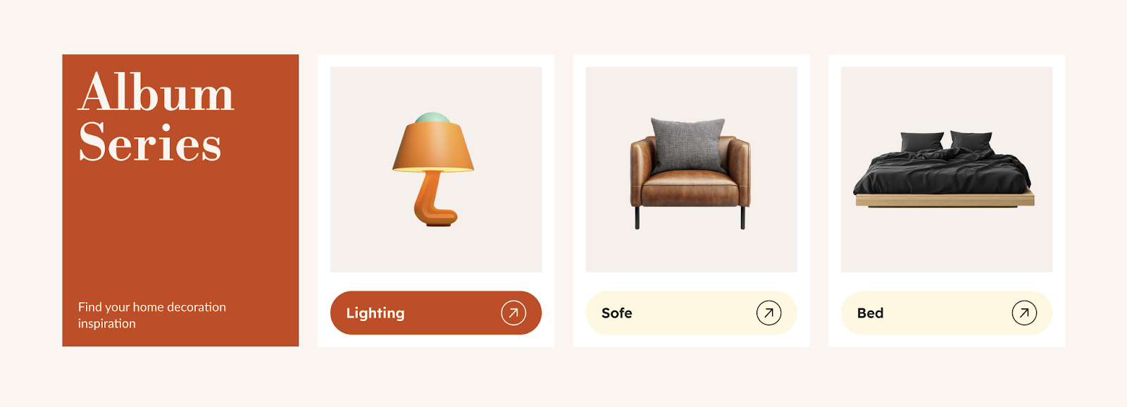 | 专辑菜单 | ![]() | 210 x 262 px | 竖版图,比例统一更美观 |