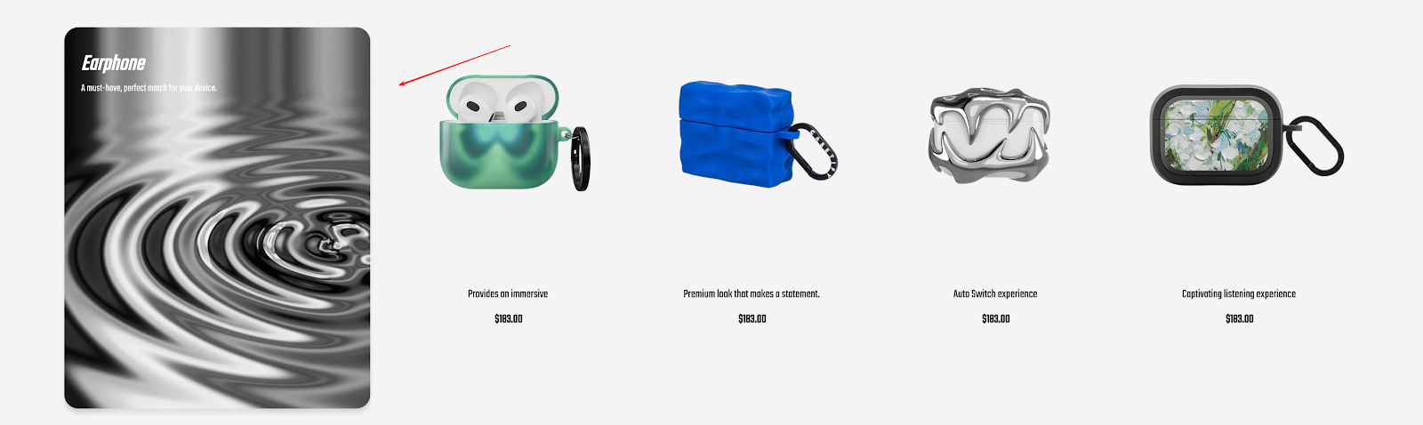 | 单品列表 | ![]() | 文字图片尺寸:宽 控制在 1280 px ,高度可根据文案长短自适应 商品图尺寸:方形即可(例:1000 x 1000 px) |