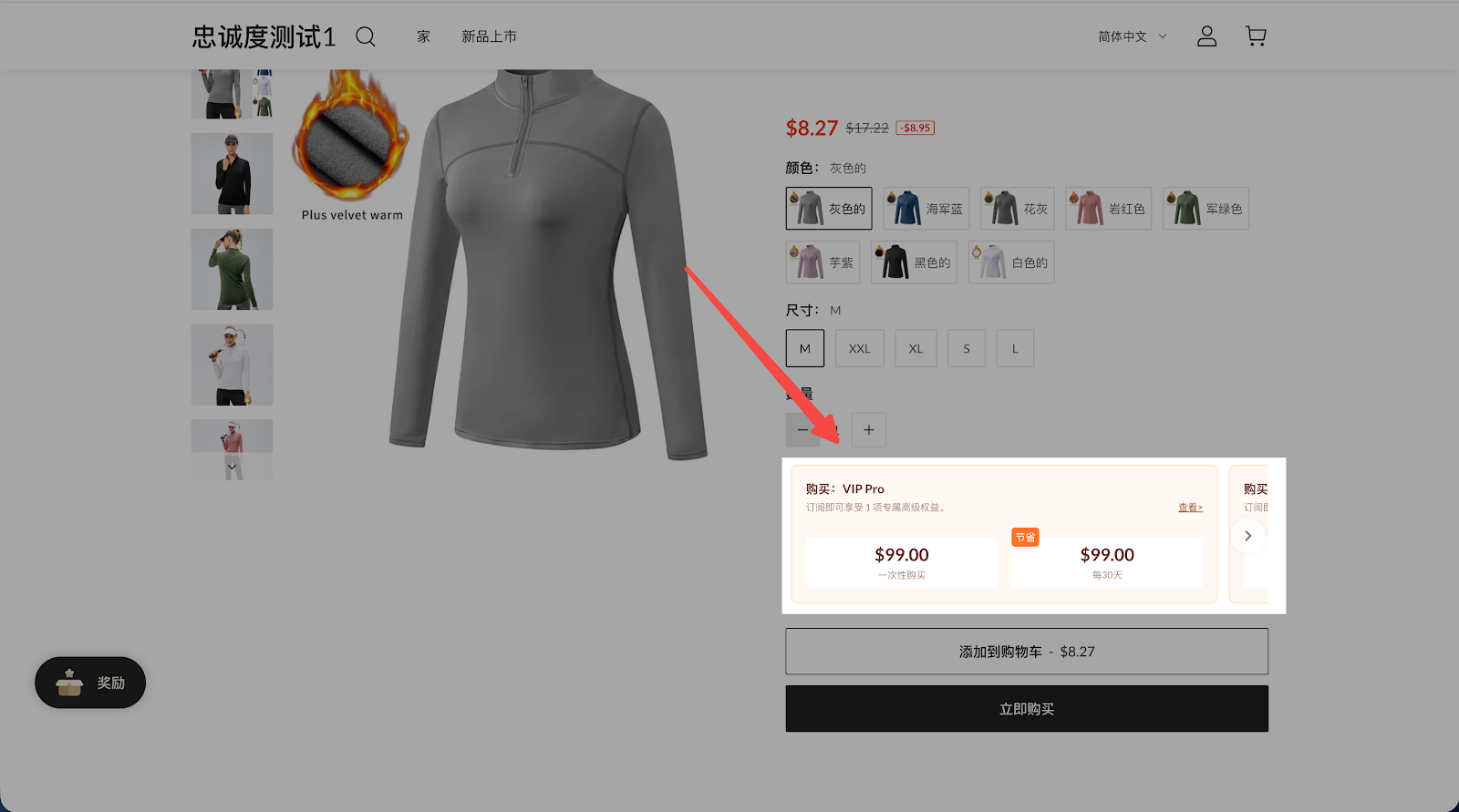 - 可现实消费者在浏览商品 > Buy Now 时,"顺手带一件"会员付费权益包
