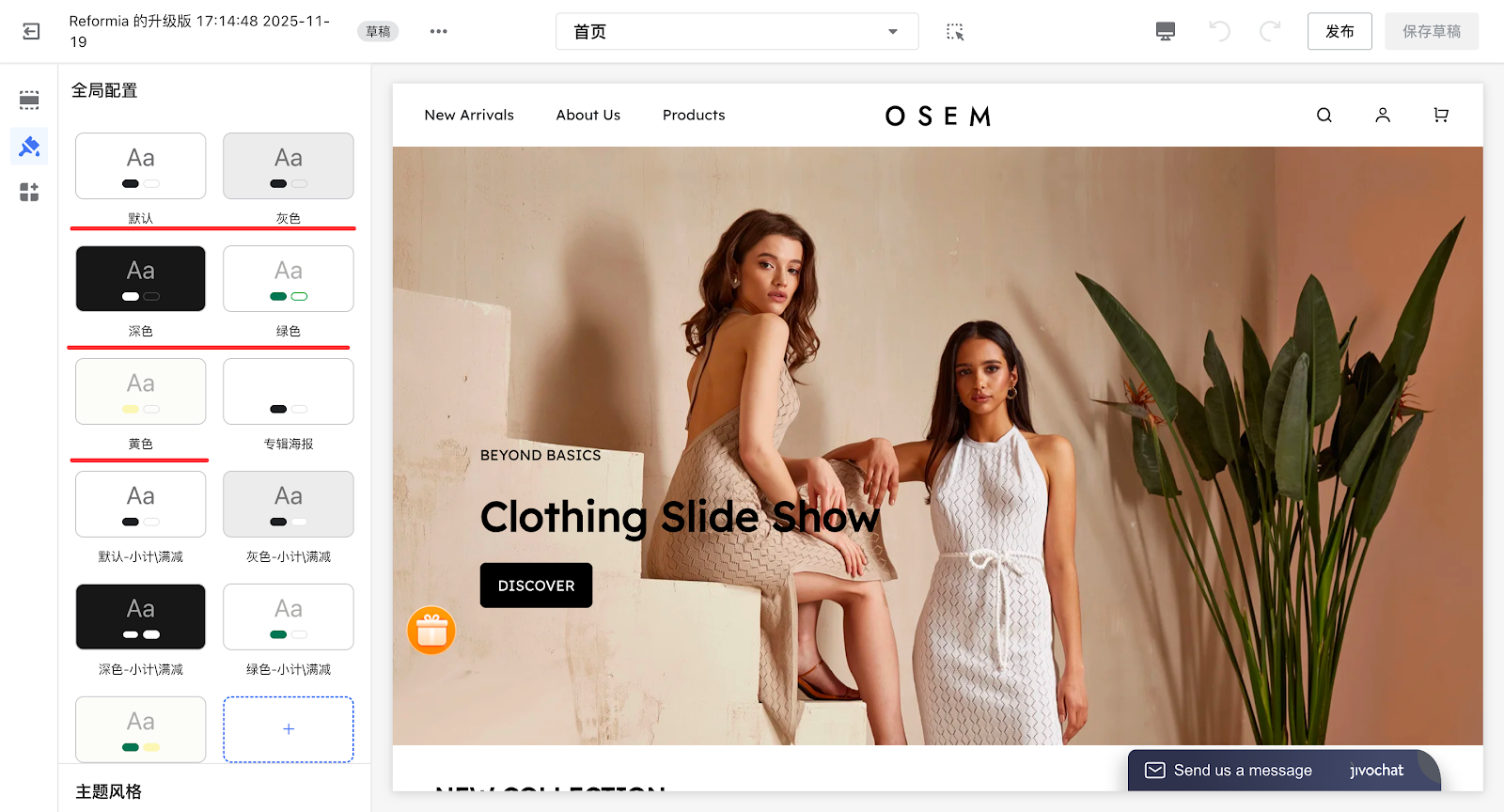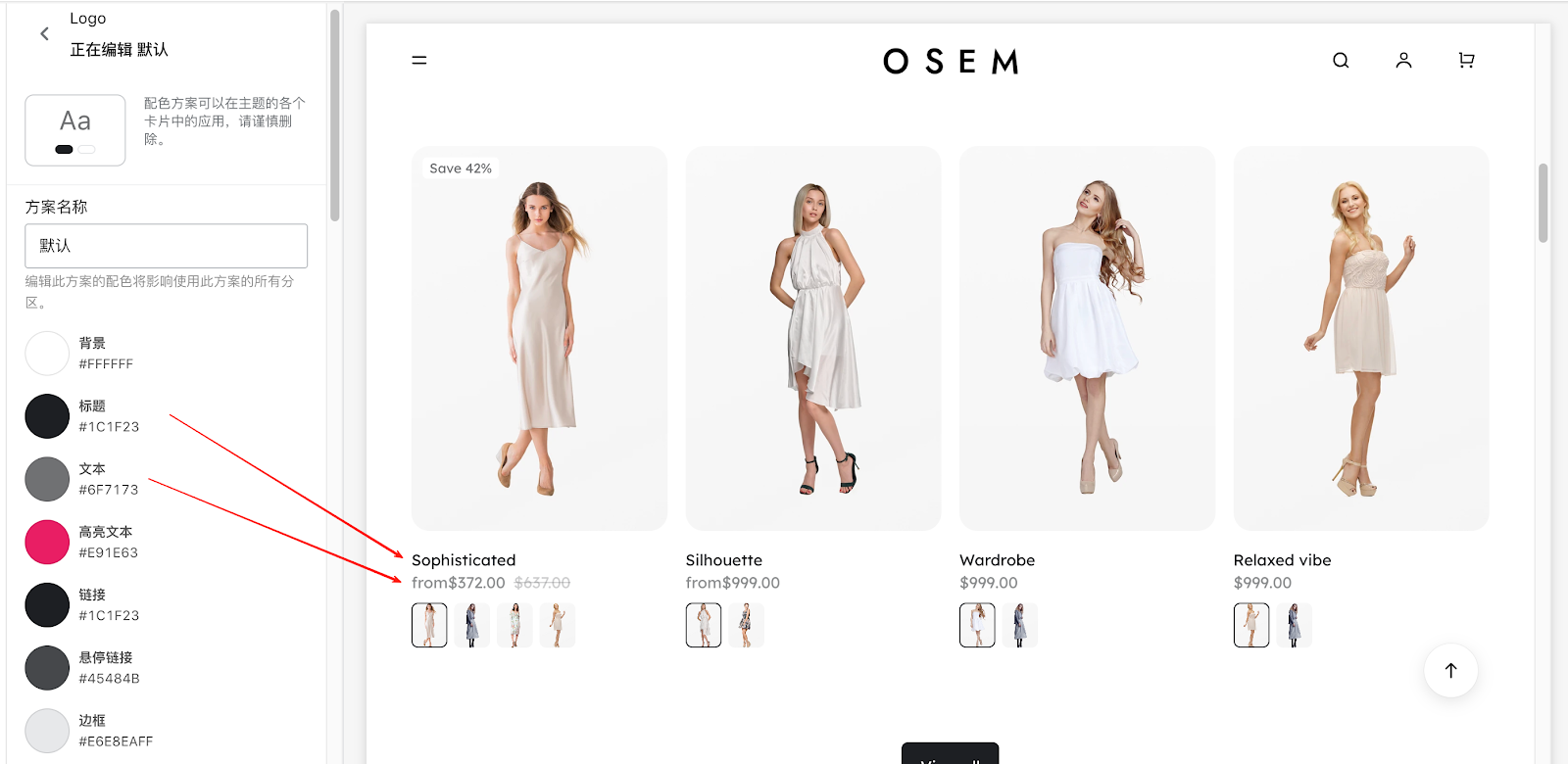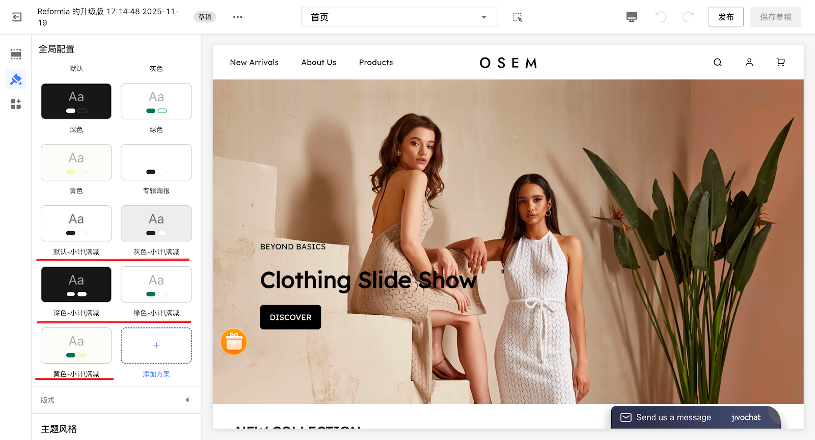 跨境独立站的配色直接影响买家信任感和下单意愿,比如按钮颜色不清晰会让买家找不到 “加购” 入口,文字与背景对比度低会导致信息看不清,好的配色能有效提升转化率。Reformia 主题提供多套配色方案,不同模块可以使用不同的配色方案,本文旨在指导您了解每个店铺前台元素对应的后台颜色配置及其修改方法。