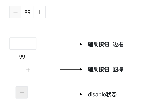 | 数量选择器 | 辅助按钮、禁用状态 | ![]() | |