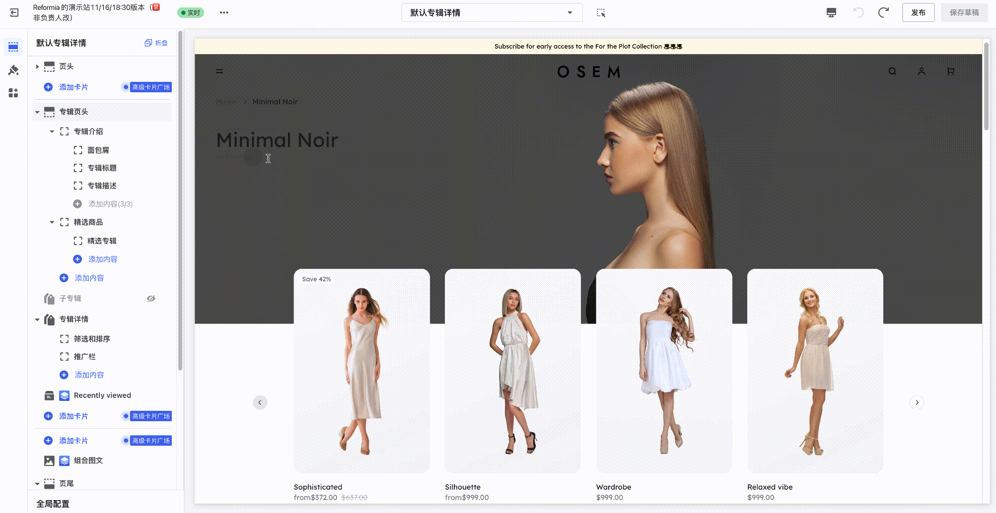| 默认 + 默认 - 小计 \ 满减 + 专辑海报 | 通用电商场景(服饰 / 数码等) | 全局配置 → 颜色
