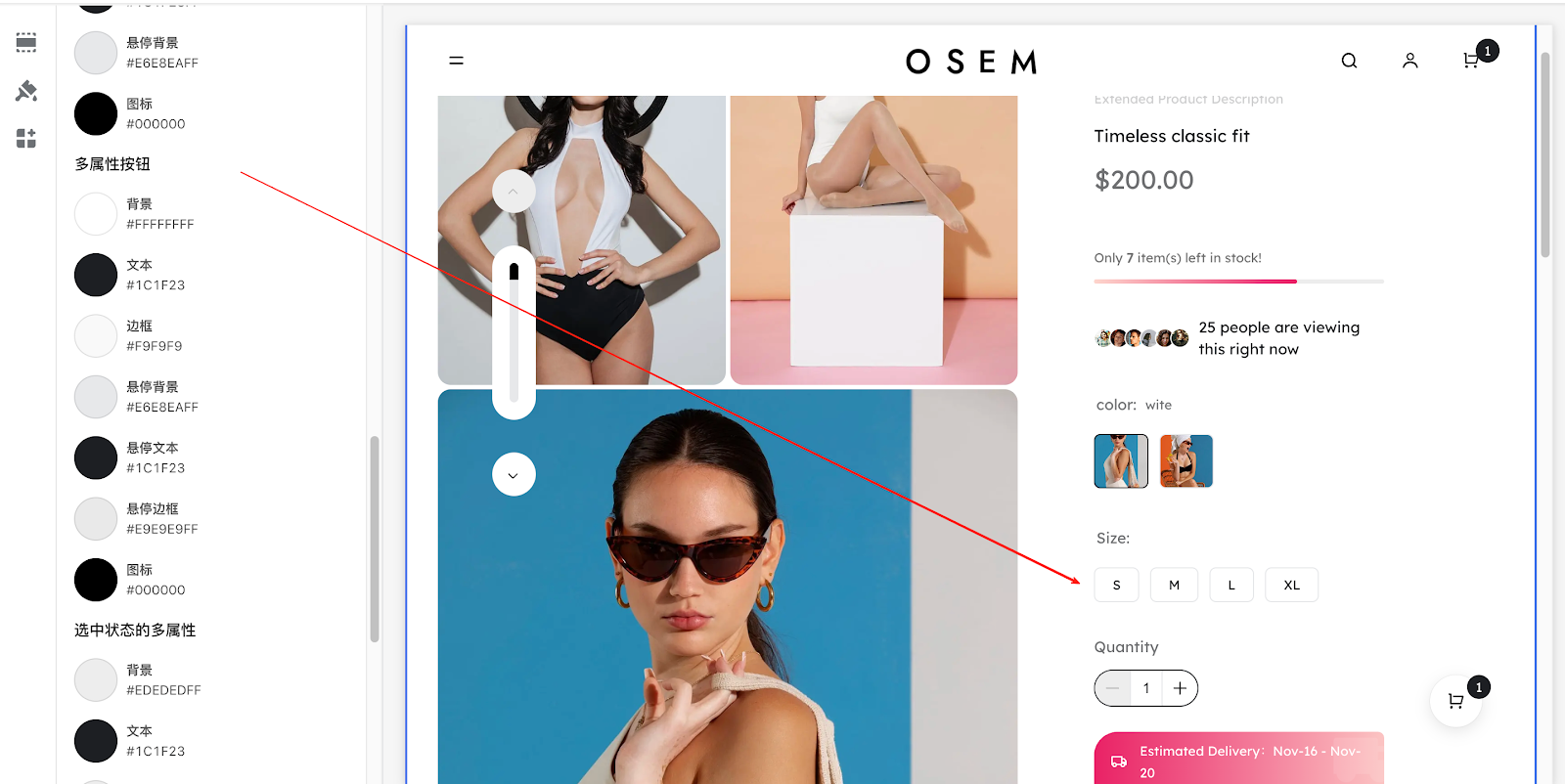 多属性按钮 | 背景、文本、悬停背景、悬停文本、图标 | 商品的变体按钮,如尺码 / 颜色属性按钮 |