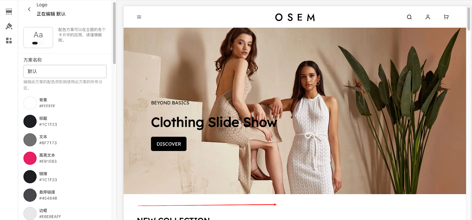 - 操作路径:找到页头 > 配色方案 > 编辑。