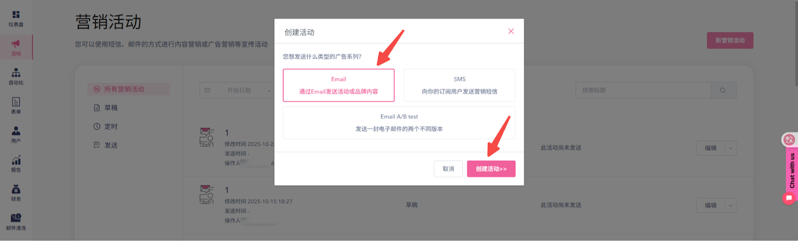 - 你想如何设计你的电子邮件:选择拖放即使用应用中的编辑器创建邮件、纯文本、 HTML 的形式