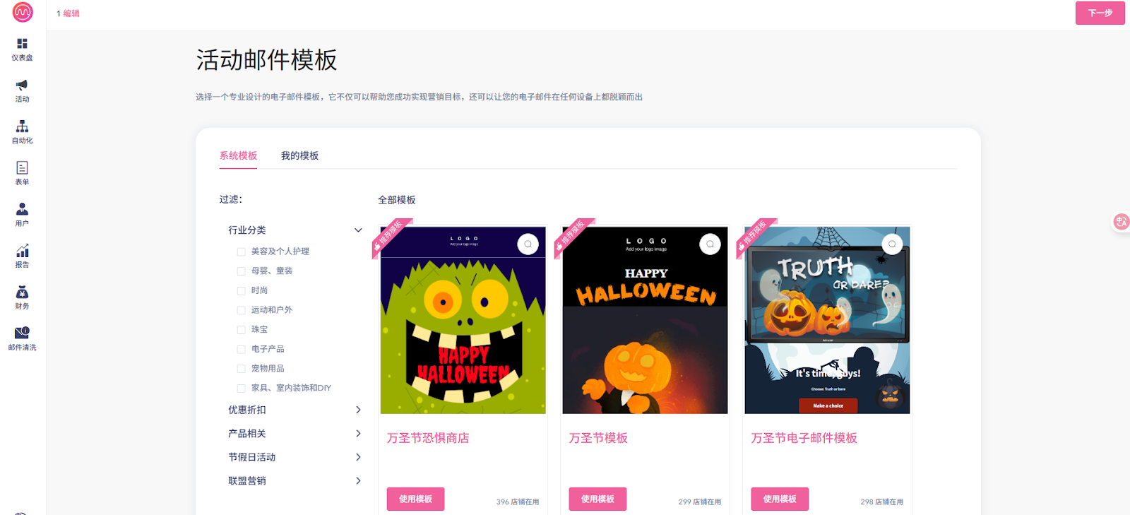 5. 可以选择使用系统的模板,点击使用模板。或者是直接下一步,从空白模板开始编辑。