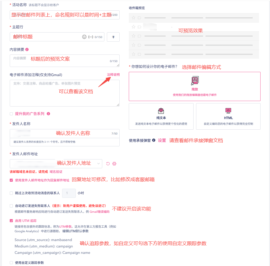 - 电子邮件添加注释:您可以为电子邮件添加注释,以便在"促销"标签页中显示交易注释、徽标注释、商品轮播广告和单张图片预览等,具体可点击注释说明进行查看