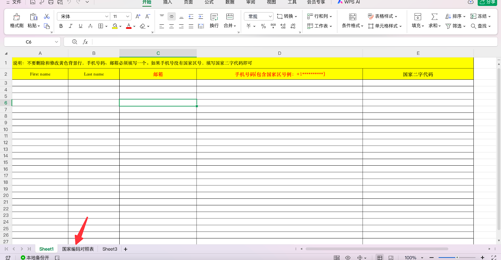 这里标黄色区域不能删除,国家二字编码在左下角的国家编码对照表里面。