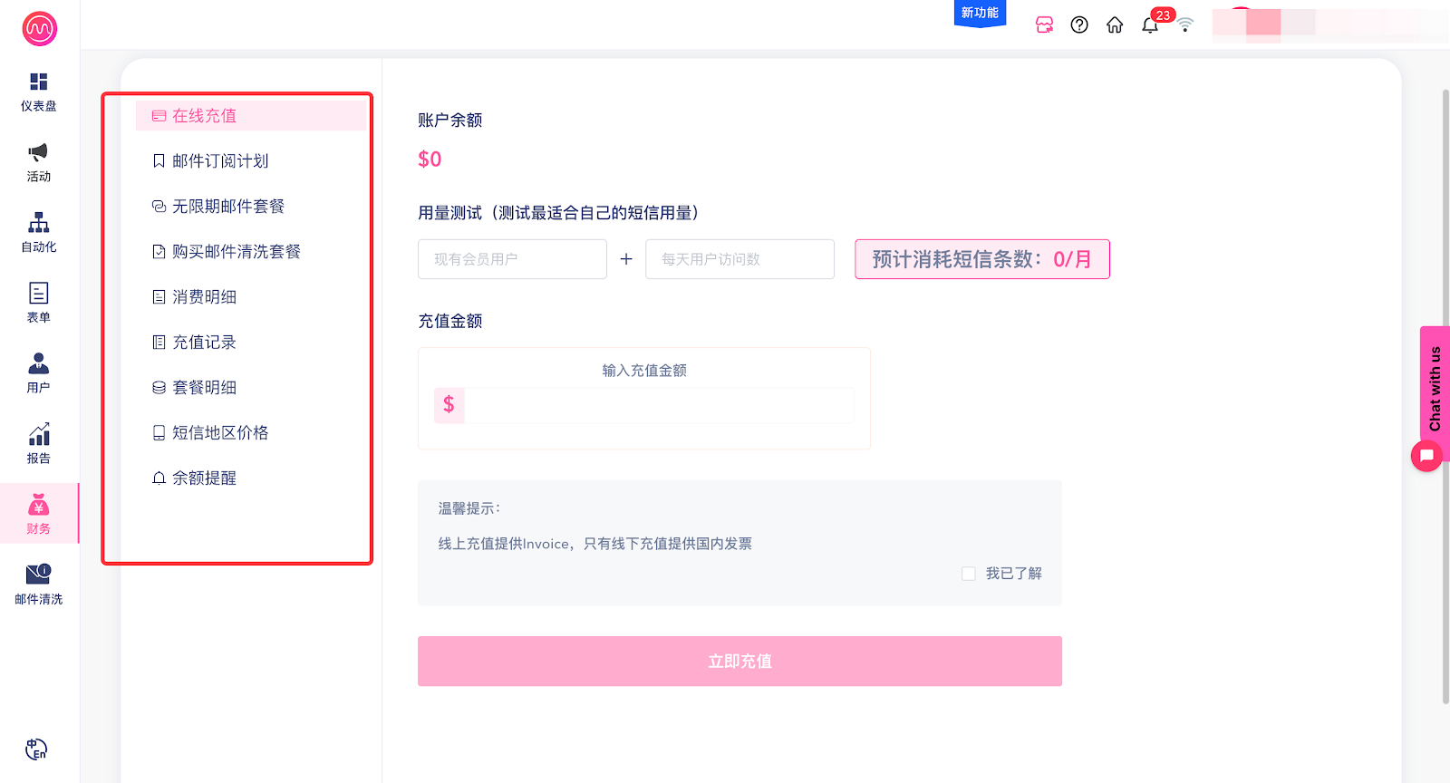 该功能为额外付费,如需使用,可以在财务 - 邮件清洗套餐进行购买。