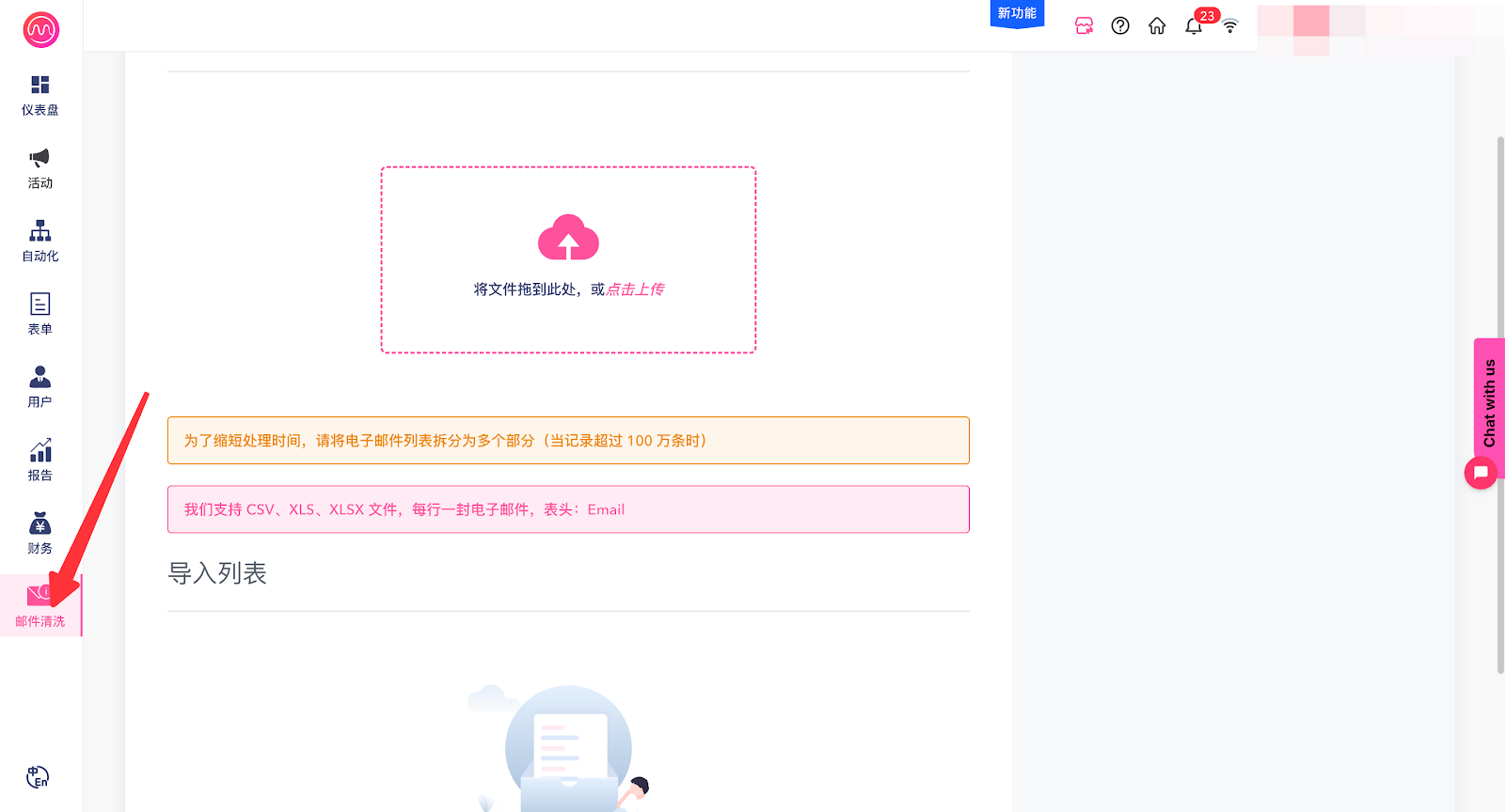 1. 选中左边导航栏 - 点击邮件清洗。