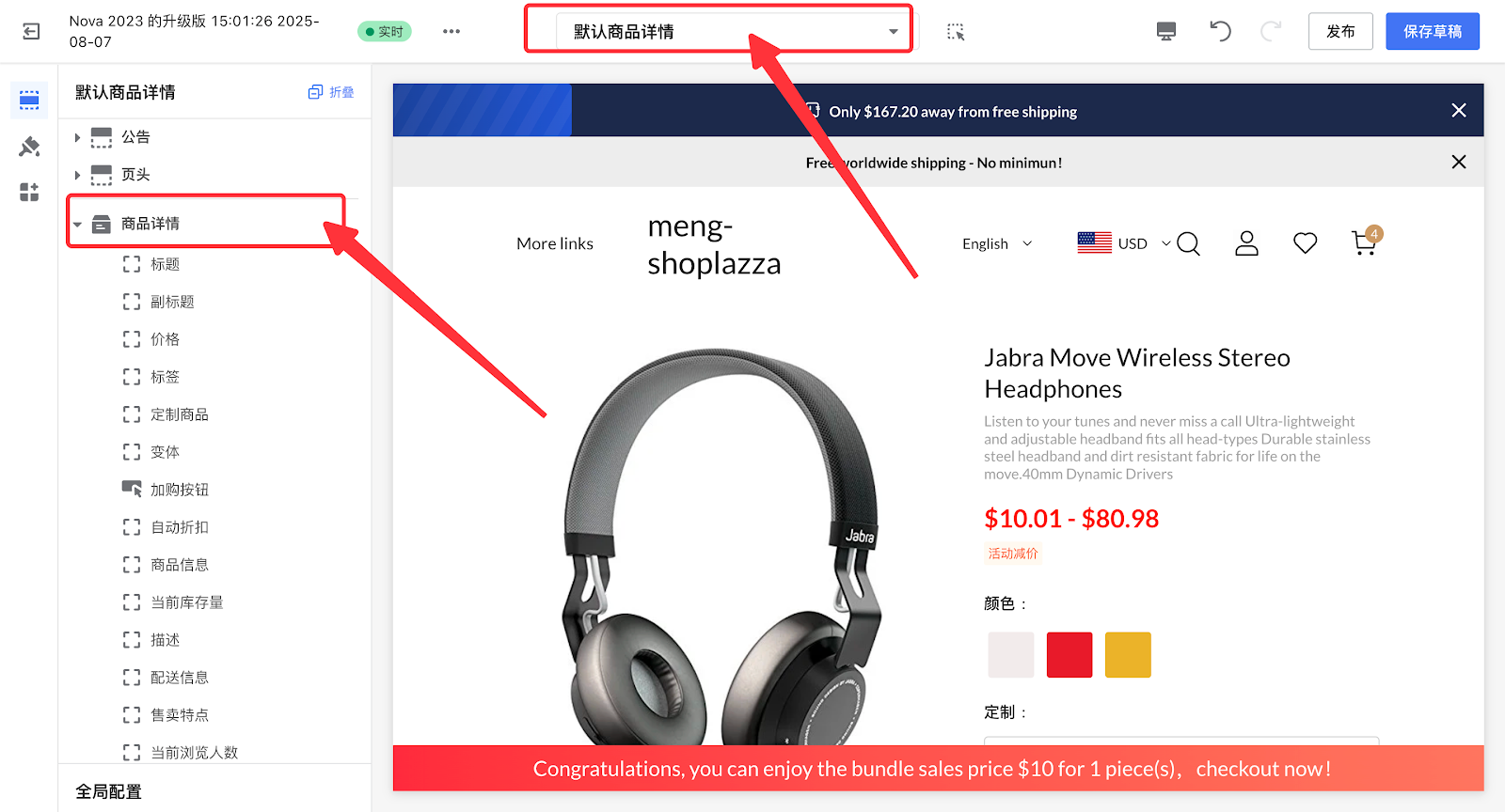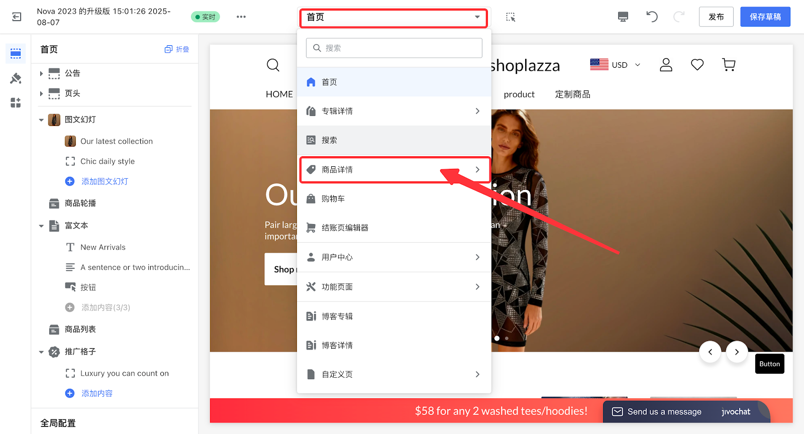 2. 在页头切换至商品详情页。