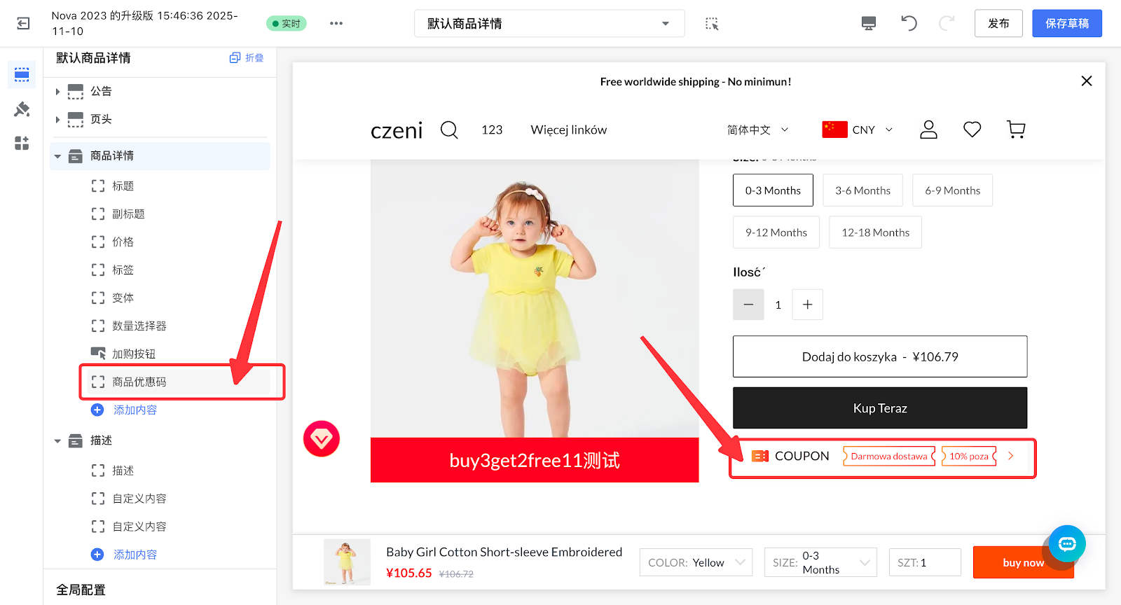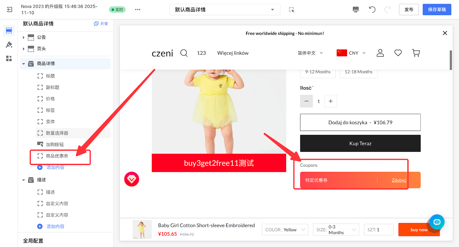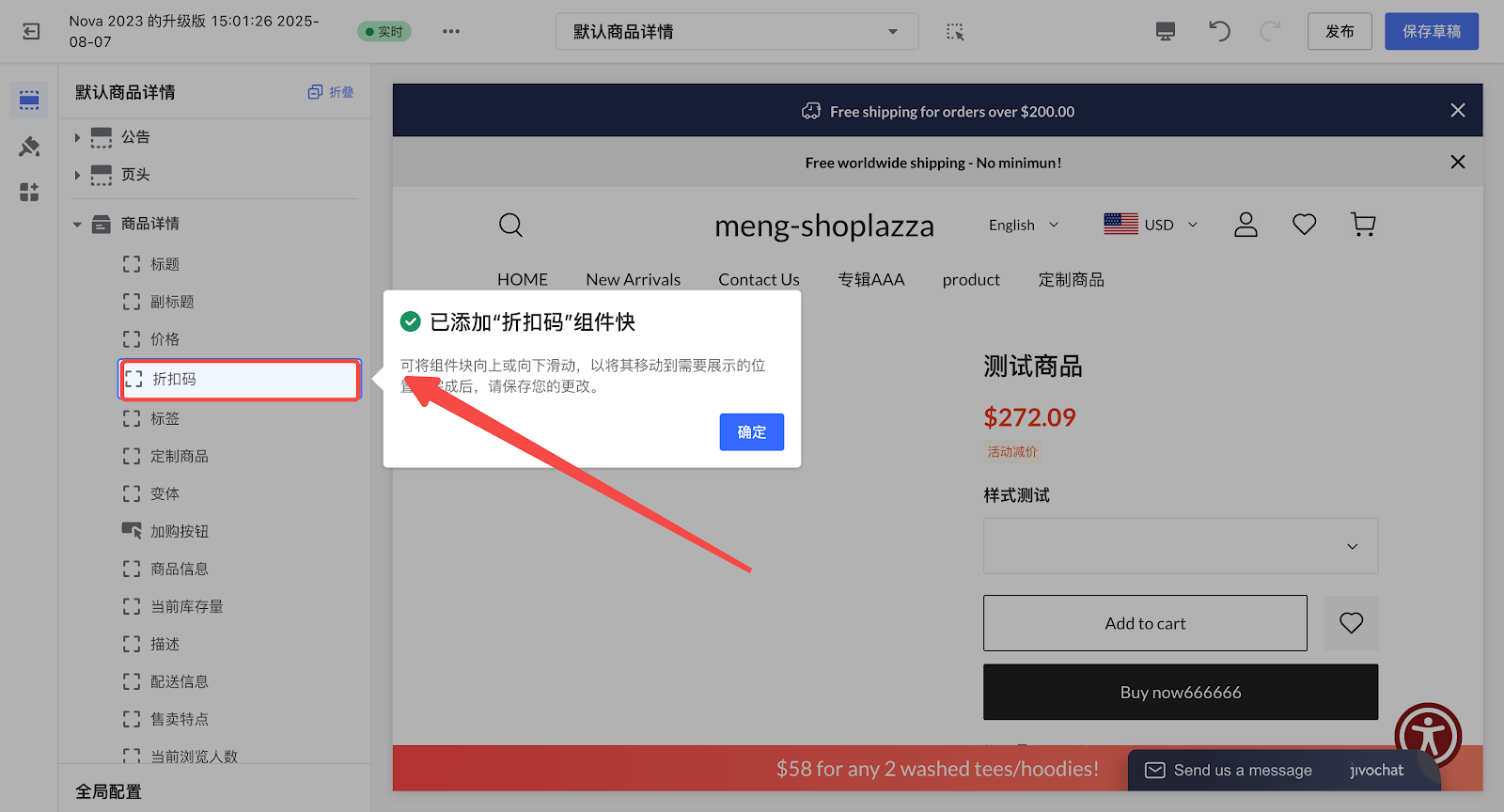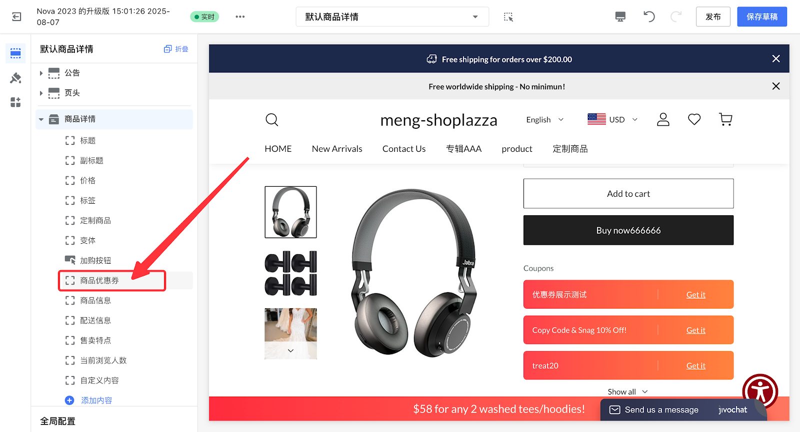 4. 添加【商品优惠券】卡片。