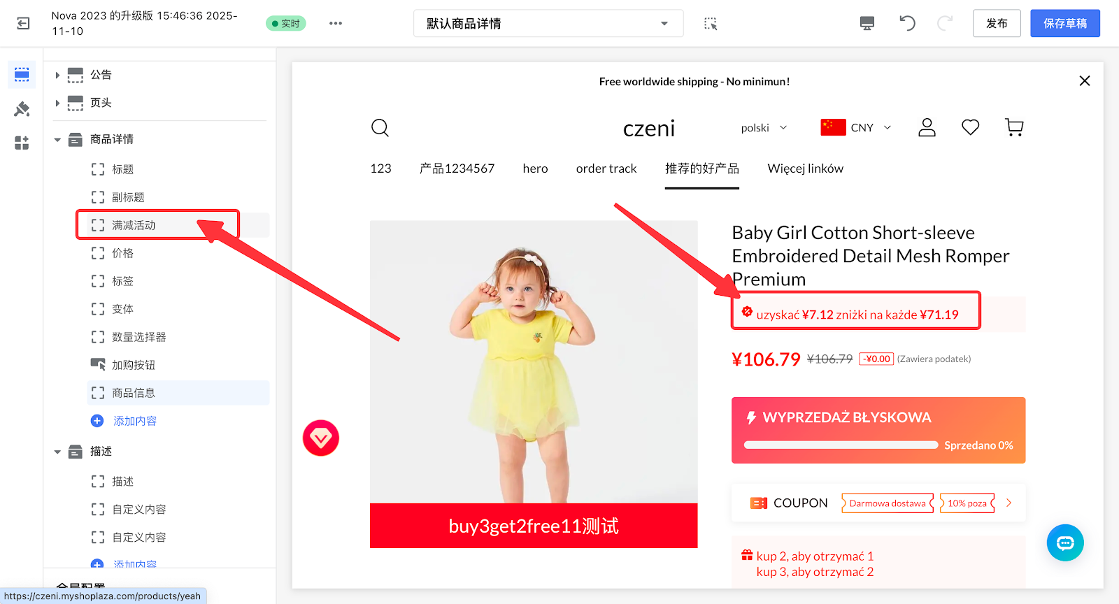 2. 进入商品详情页,在商品详情模块中排查是否添加了对应的活动卡片。
