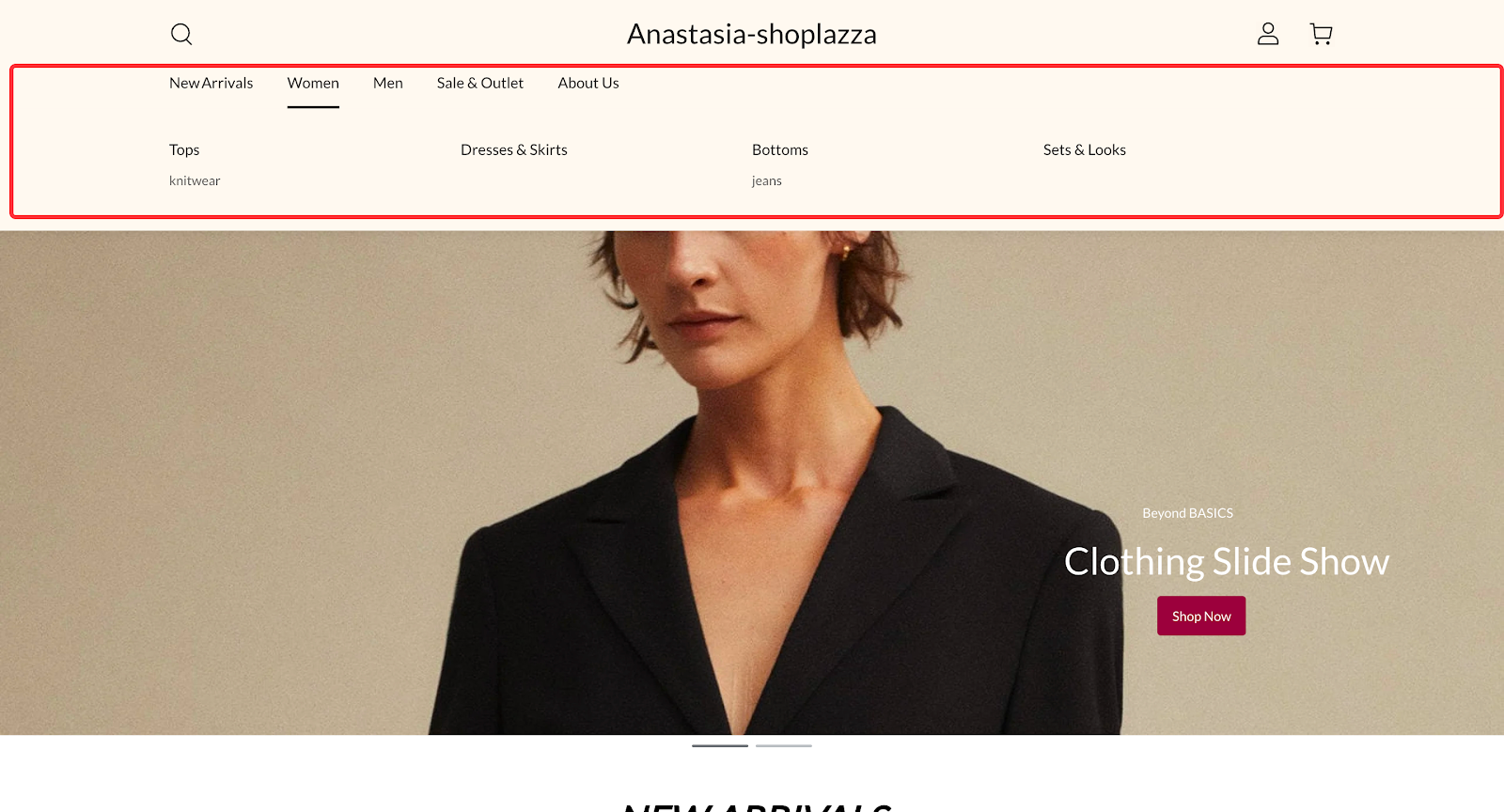 1. 登录你的 Shoplazza 管理后台,点击在线商店 > 菜单导航。具体操作可参考文档:设置菜单导航。