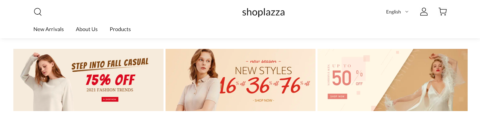 - 活动宣传文案:在 banner 上方加入简洁有力的活动文案,例如限时折扣、季节促销或新品发布,用于快速传达当下最重要的营销信息,吸引客户继续浏览。