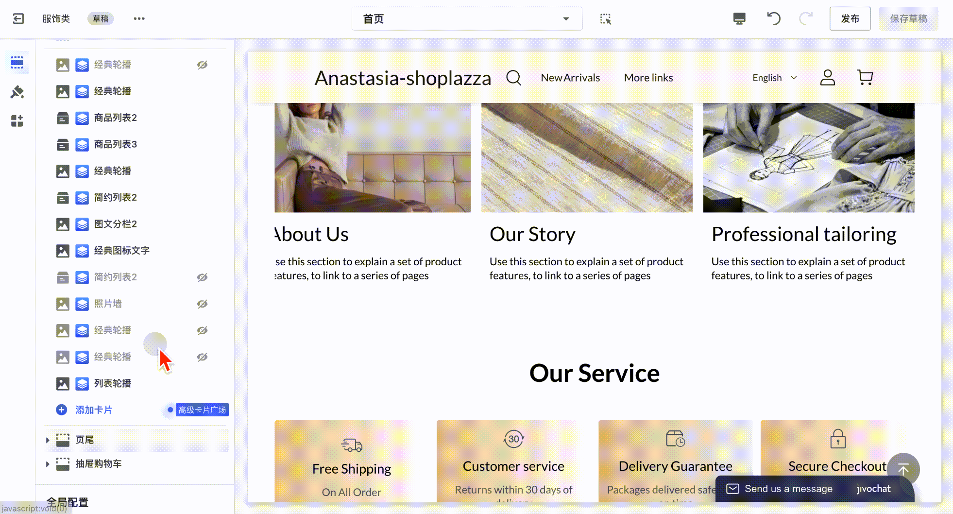 本篇文章将围绕服饰类店铺的核心需求,介绍如何通过 Page Builder(高级卡片)打造更具吸引力的服饰类店铺首页,将涵盖首页关键板块的搭建,包括:页头导航、banner 展示、商品陈列、营销活动、买家秀、品牌形象呈现及店铺政策服务的配置教程。