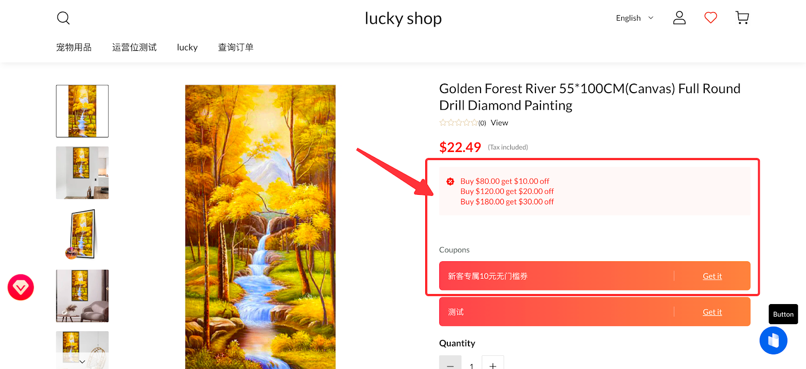 方式1 将活动信息展示在商品详情页:展示优惠券领取入口和满减活动详情,详细教程可参考:如何在商品详情页添加折扣卡片。