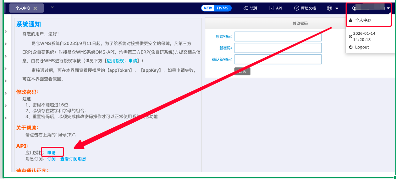 3. 申请后告知云仓客服,约两小时内显示API信息。