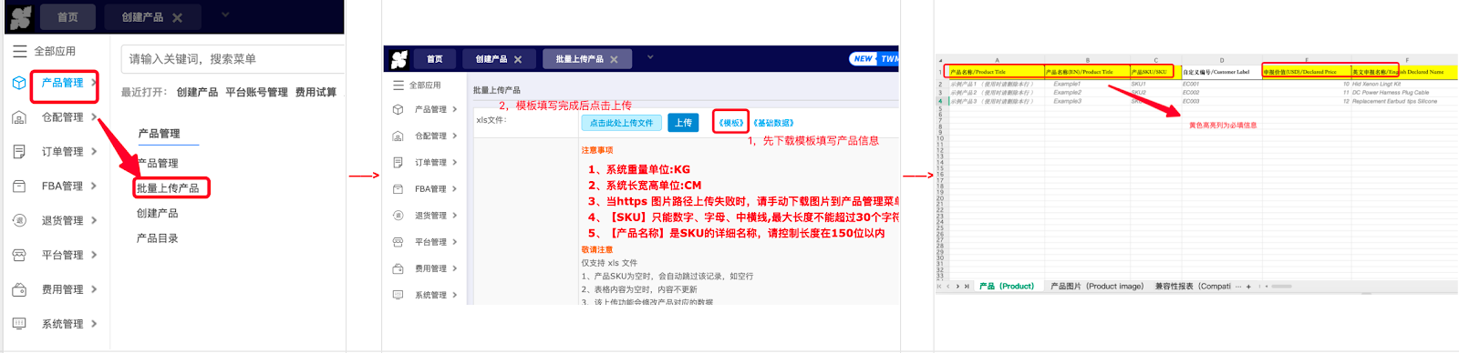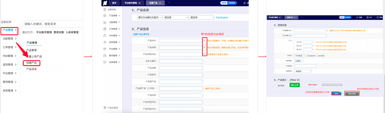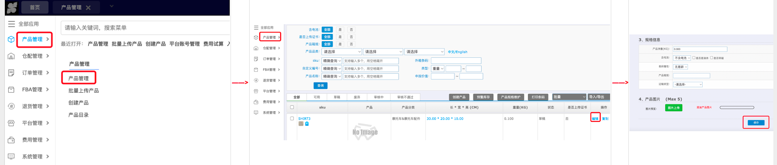 1. 登录仓储物流系统,点击菜单栏产品管理;