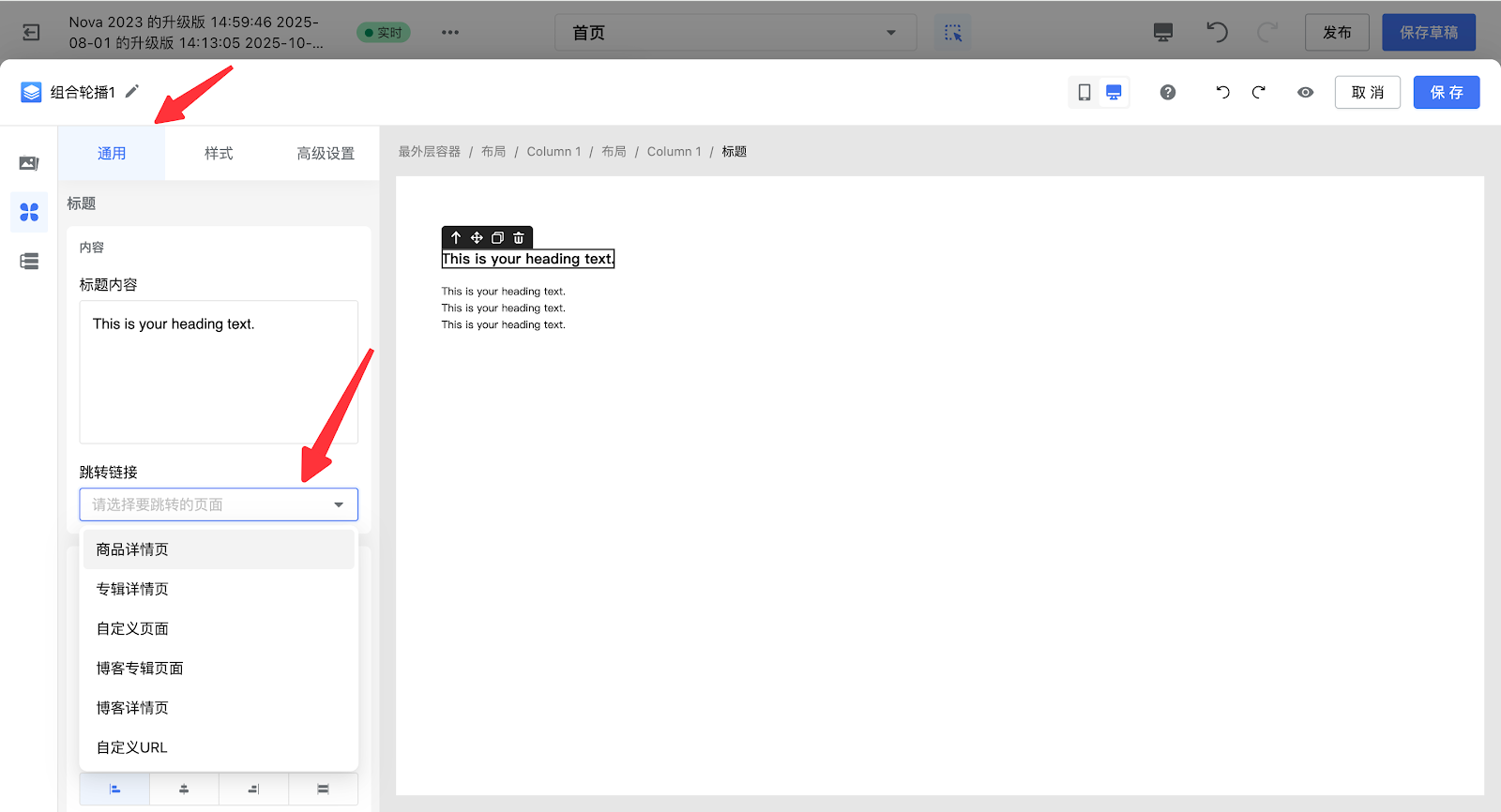 6. 点击标题 - 通用,为您的标题添加跳转链接。
