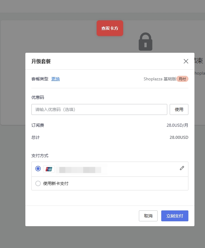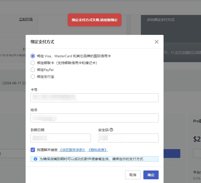 套餐支付方式绑定失败