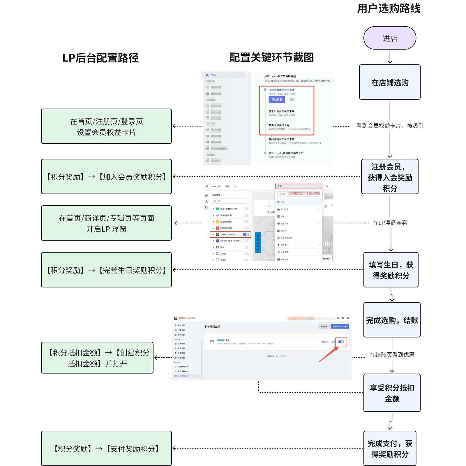 LP体系内用户入会消费最佳实践路线及配置如图所示