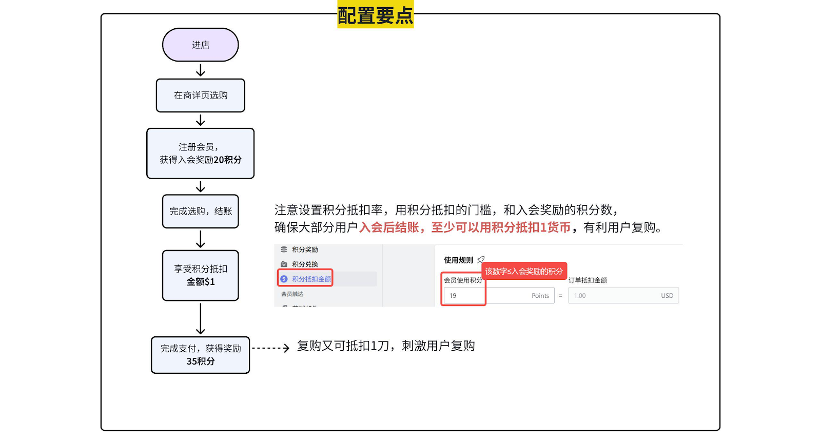 完成配置后,客户应可以顺利入会 → 送分 → 支付销分 → 支付成功送分 → 下次复购,形成闭环。