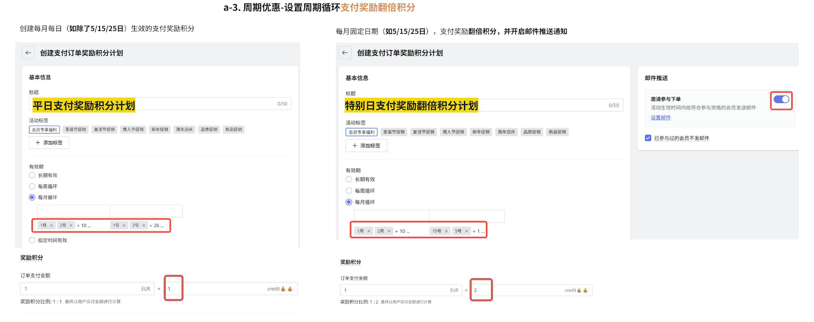 建议设置1:生日奖励的积分数 ≥ 积分抵扣1货币所需积分