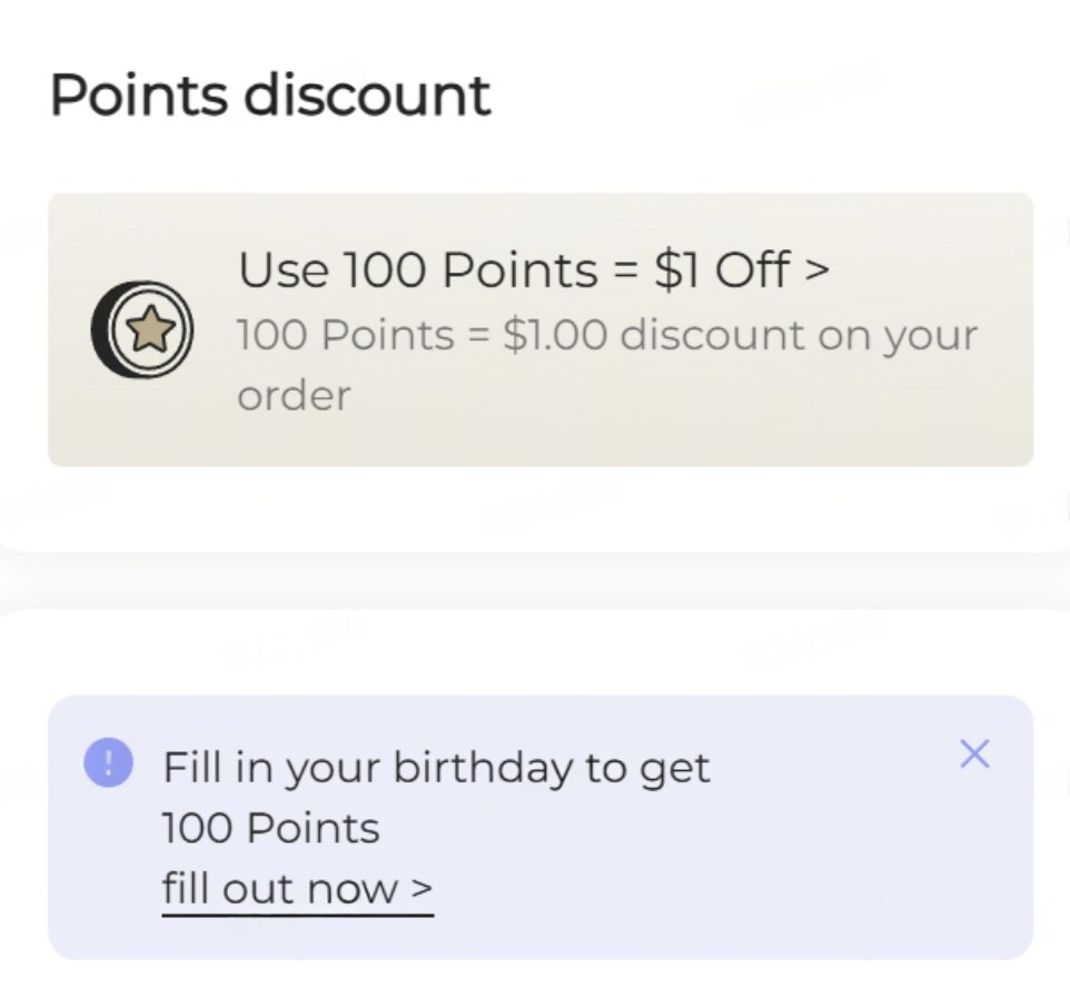 LP浮窗上会显示积分抵扣金额规则以及提示填写生日信息。这样可有效引导用户填生日,获积分: