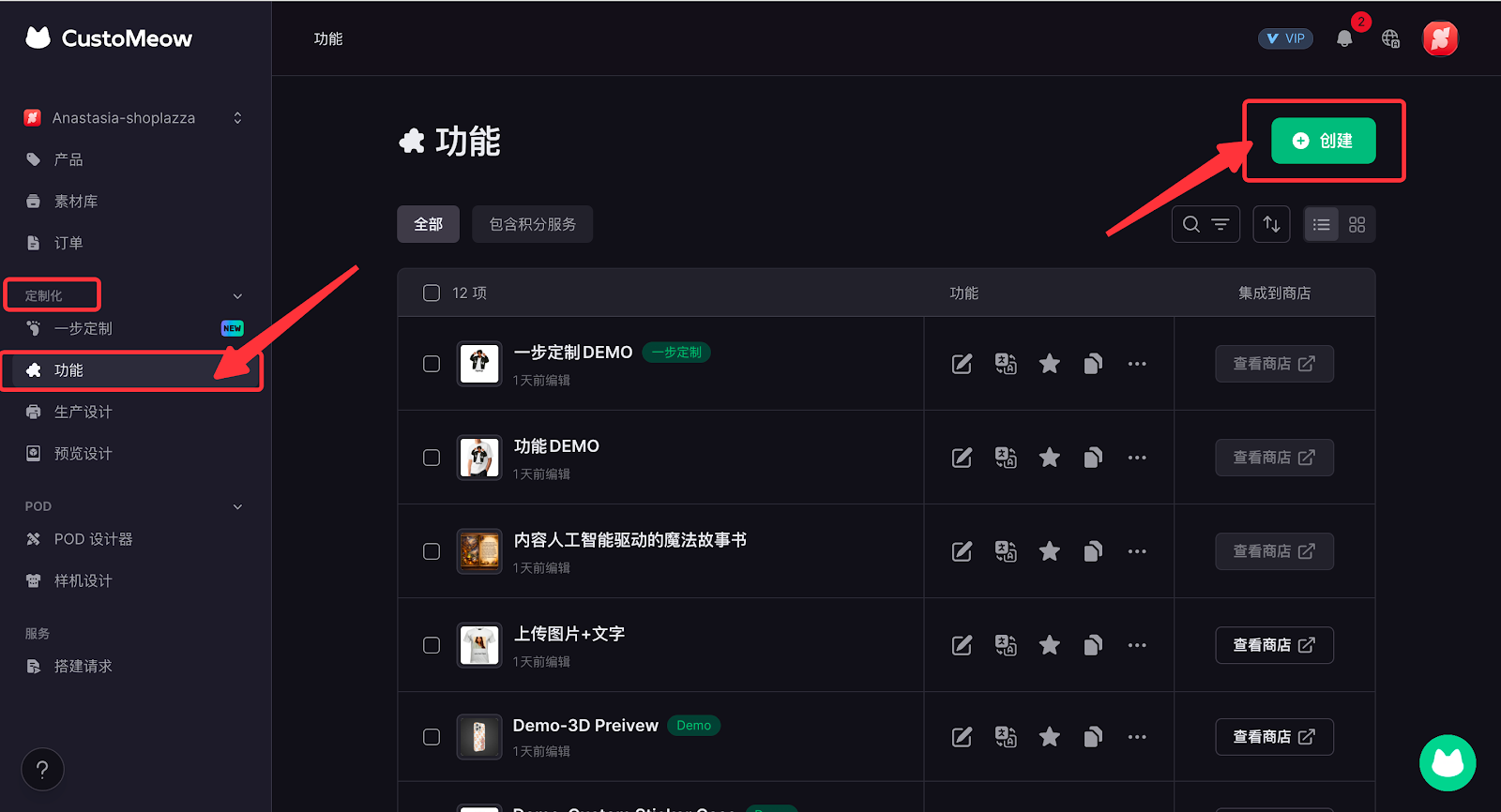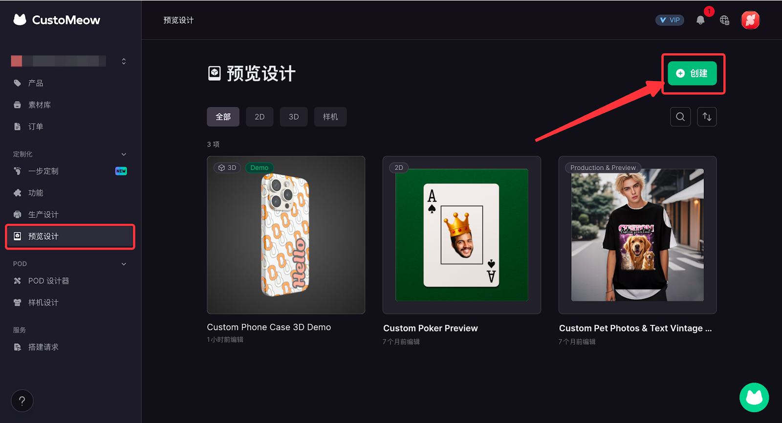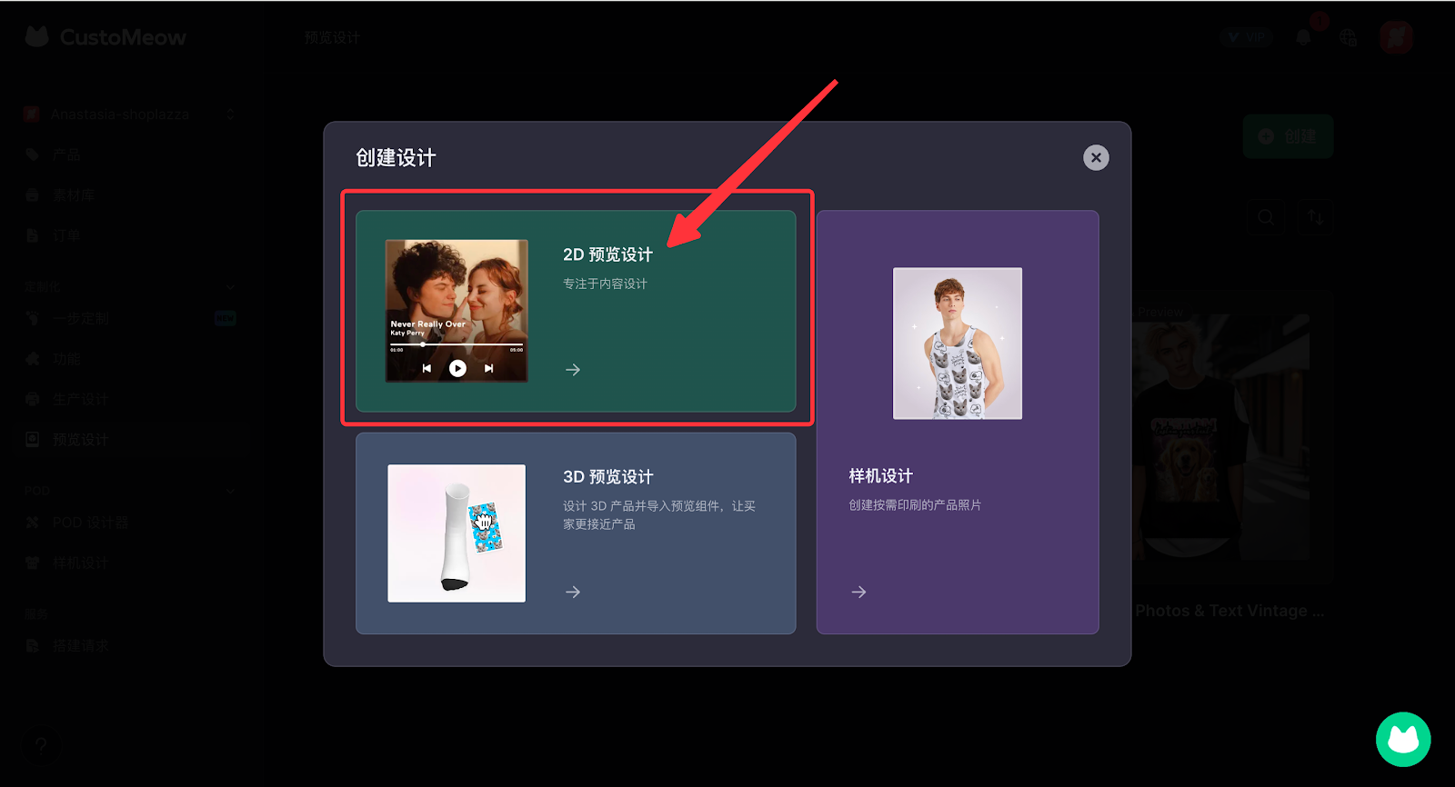 2. 进入定制喵后台 > 定制化 > 预览设计,点击创建。