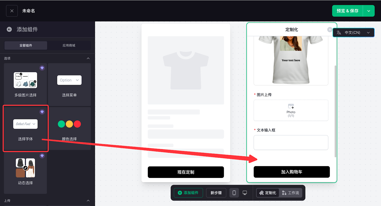 7. 如您希望客户可以自由选择更多的字体样式,还可以加入字体选择组件。