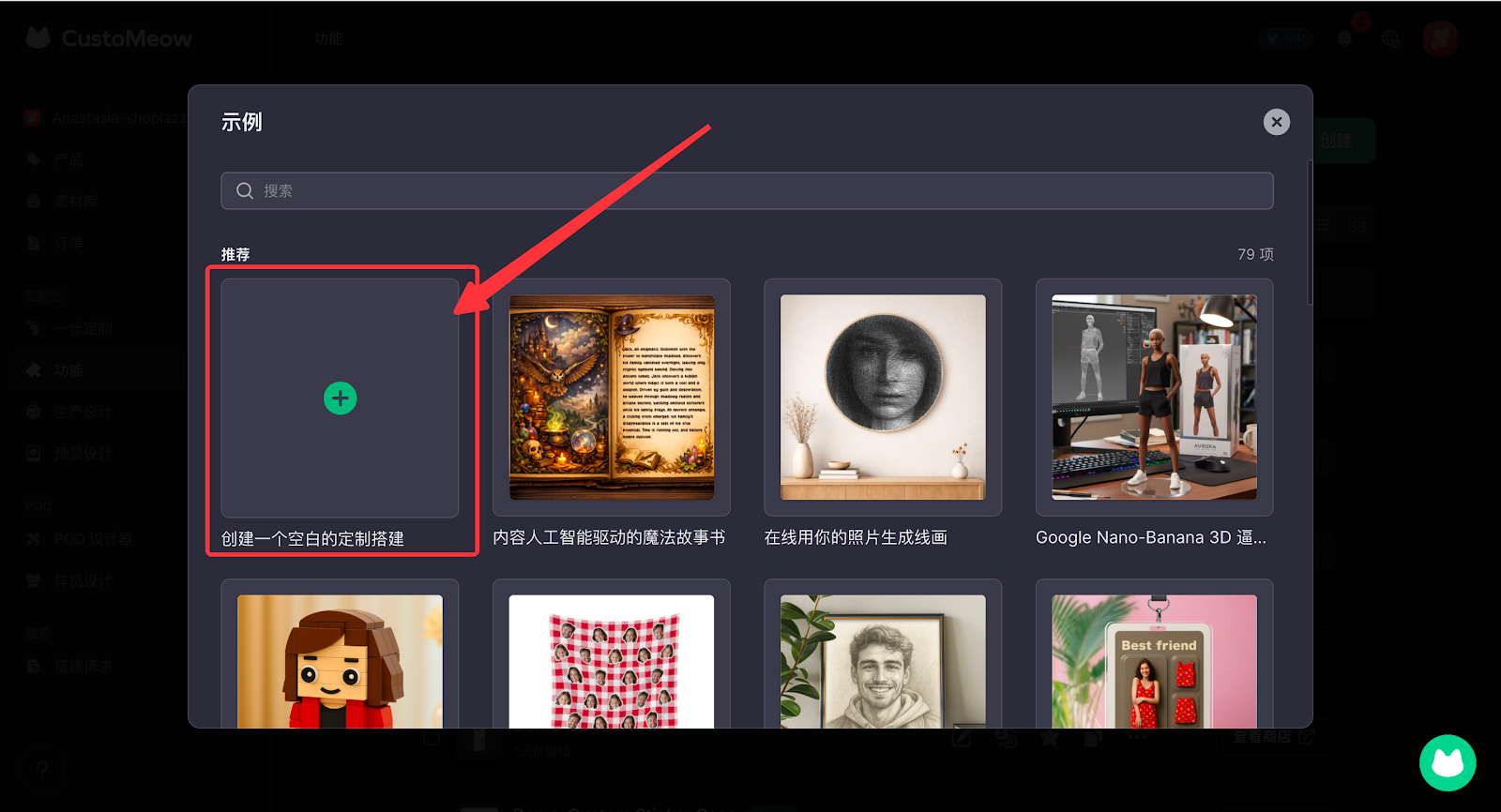 1. 进入定制化板块,选择功能,点击创建,新建一个空白定制搭建。