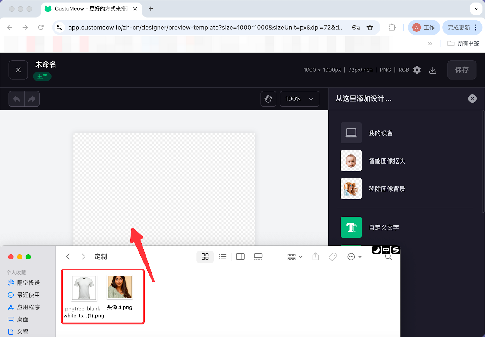 5. 将已经准备好的素材从您的电脑文件夹中分别拖入画布,根据您的定制需要,将素材调整至合适的大小。