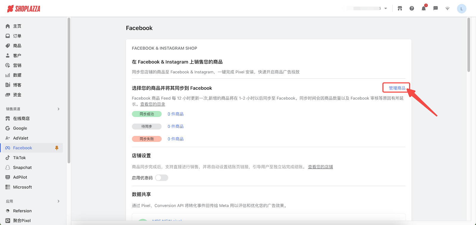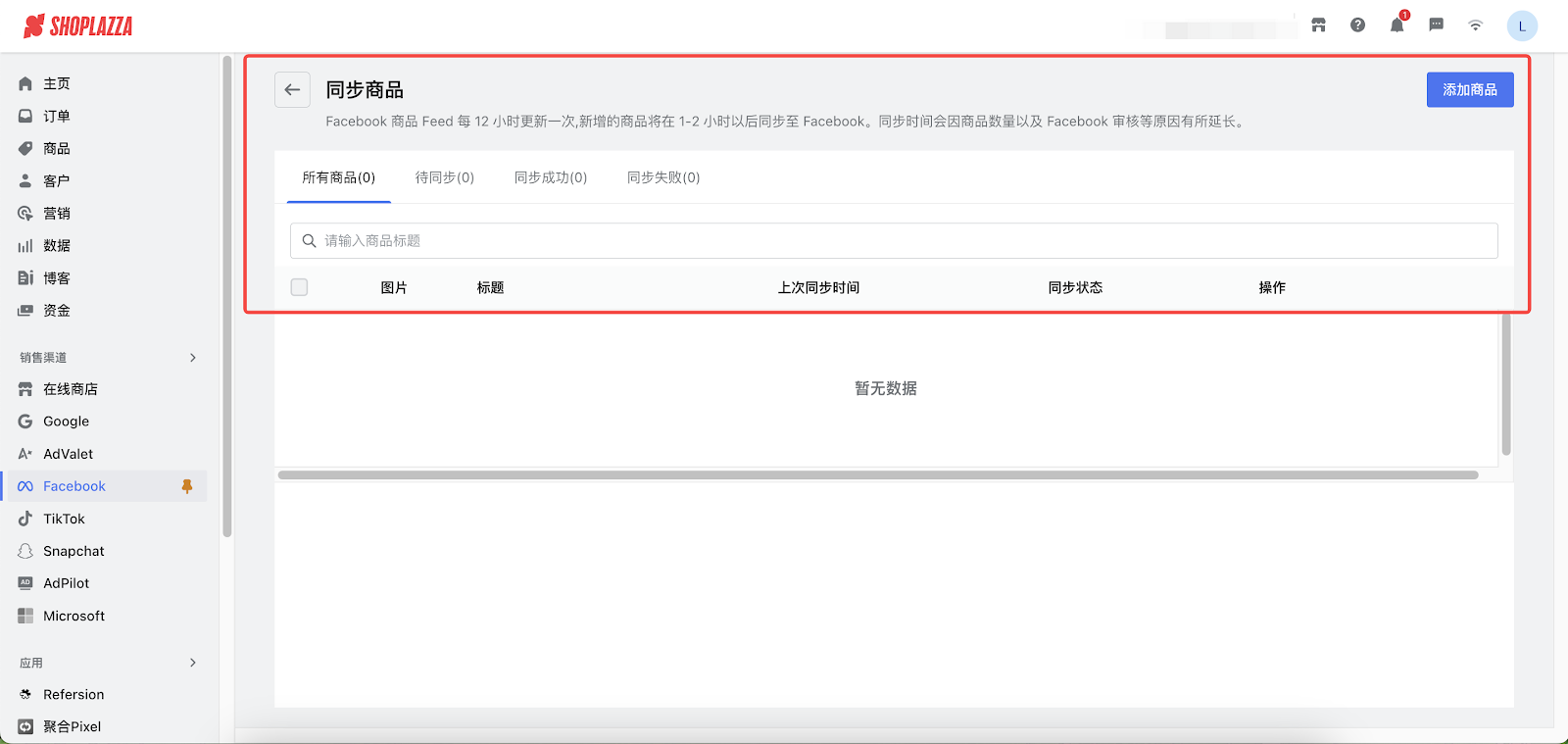 10. 进行商品同步。完成所有设置后,可进行商品同步。Facebook 商品 Feed 每 12 小时更新一次,新增的商品将在 1-2 小时以后同步至 Facebook。同步时间会因商品数量以及 Facebook 审核等原因有所延长。